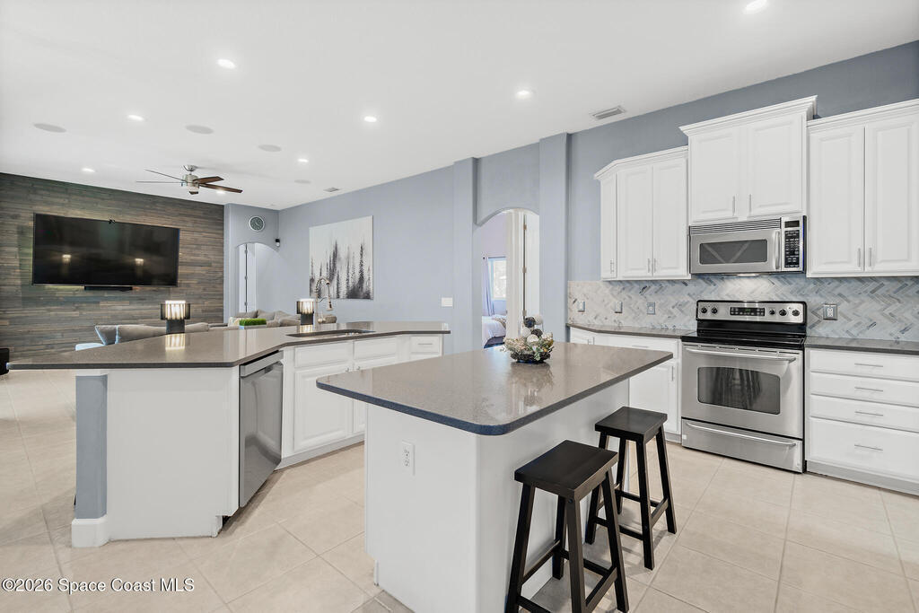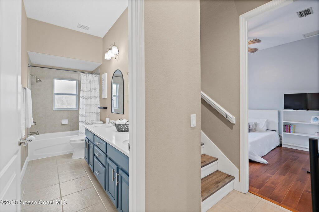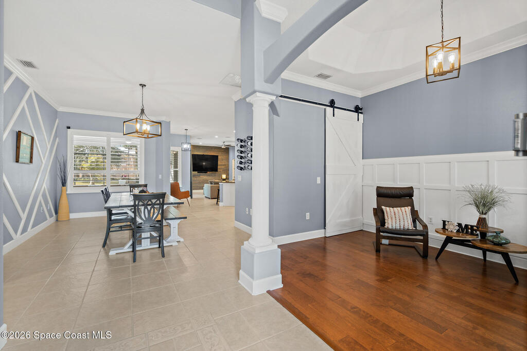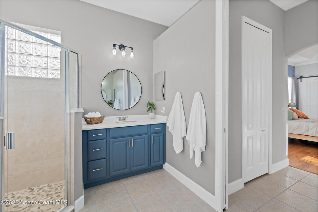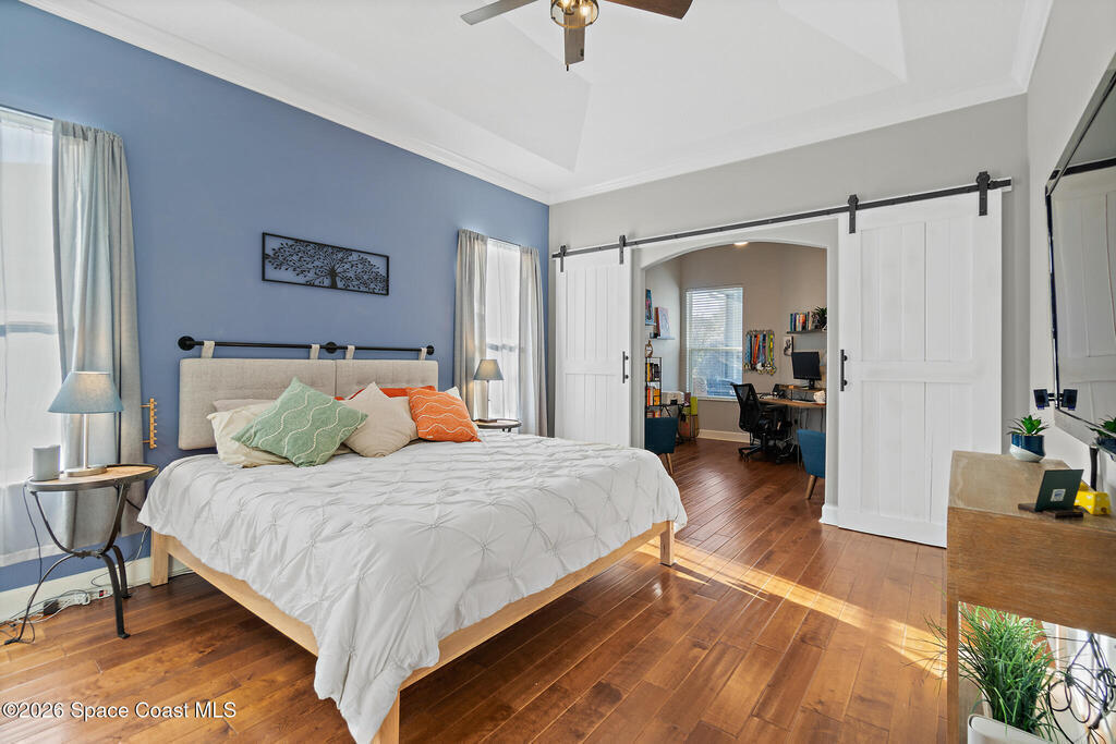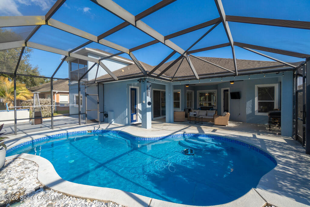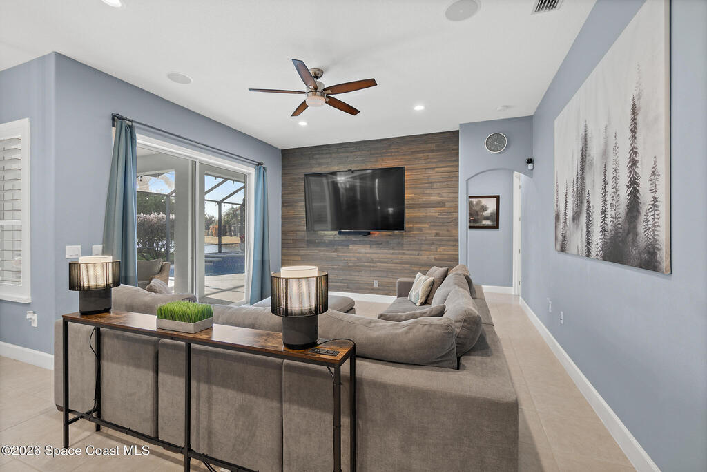 Transferable VA loan--ask for details on the approx. 2.75% INTEREST RATE! Welcome to this beautifully updated, lakefront pool home located in the gated Sunstone community of Viera. This 4-bedroom, 3-bath home with an upstairs BONUS ROOM blends timeless design with modern updates throughout. Recent improvements include fresh interior and exterior paint, an updated kitchen, and a recently resurfaced saltwater, solar-heated pool, creating a truly move-in-ready home. The open floor plan is filled with natural light and features tray ceilings, crown molding, 8-foot doors, and generous living spaces ideal for everyday living and entertaining. The oversized primary suite offers a sitting area perfect for a home office or flex space, dual walk-in closets, and a spa-style bath. Step outside to a screened lanai with a saltwater, solar-heated pool, summer kitchen, and tranquil lake views. Notable updates include roof (2018), upstairs A/C (2020), and downstairs A/C (2025).