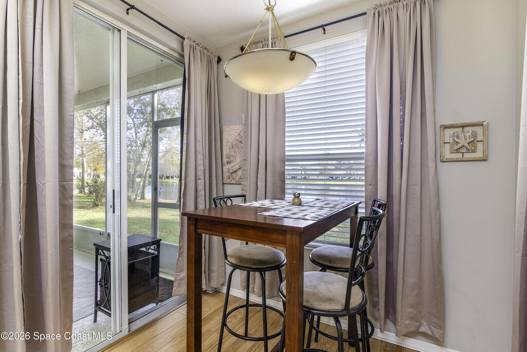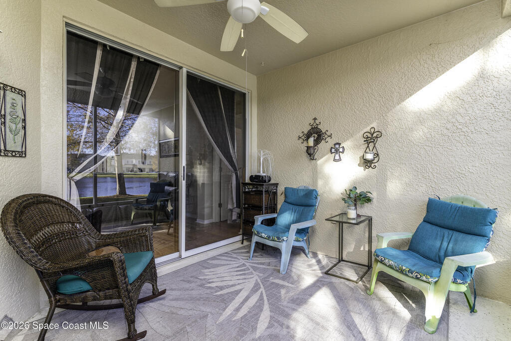 NO STAIRS -- just easy living! This FIRST FLOOR END-UNIT condo offers serene lake views and a split-bedroom layout for maximum privacy. Move-in ready and awaiting your personal touch, the flexible bonus room easily adapts as a home office, den, or guest space. Enjoy a functional layout where prep, dining and gathering connect seamlessly. Breakfast tastes better in the sunlit nook overlooking the lake. The spacious primary ensuite features a large walk-in closet, double vanity and tiled shower. Sip, unwind, and enjoy lake views from your breezy screened lanai. Additional features include a 2yr-old A/C, indoor laundry and a single-car garage. HOA covers exterior maintenance, roof, landscaping, building insurance and access to the sparkling community pool. Ideally located near Suntree Country Club, The Avenue Viera, Brevard Zoo, beaches, nature trails, I-95 and major employers of the Florida Space Coast Launch Ecosystem -- perfect for retirees and professionals alike.