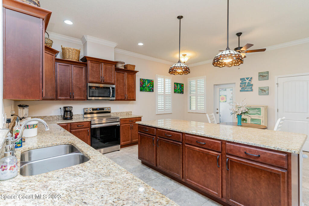SPECTACULAR ''ALAMANDA KEY'' LAKEFRONT! Exquisitely upgraded ''key west'' style 3 BR + EXTRA FLEX ROOM (could be used as 4th bedroom) Located just a few steps from the community pool, tennis court & clubhouse! Fantastic curb appeal, spacious rooms, extensive tile work + priceless impact glass windows & doors throughout! Light, bright open & inviting this home is a real ''one of a kind'' because of countless phenomenal upgraded features...granite counters, custom cabinets, New SS appliances, crown molding, plantation shutters, gutters, epoxy garage floor & exterior painted ALL in 2023! Huge master suite, formal dining room (could be office or 4th bedroom) interior laundry, breakfast nook & enormous gourmet kitchen w/gigantic center island overlooking the Great room for entertainment at its finest. Back screened porch, 2 car garage w/private South side entry...resort style 55+ Florida living & ''key west'' theme in a convenient location means ALAMANDA is the KEY to the good life!