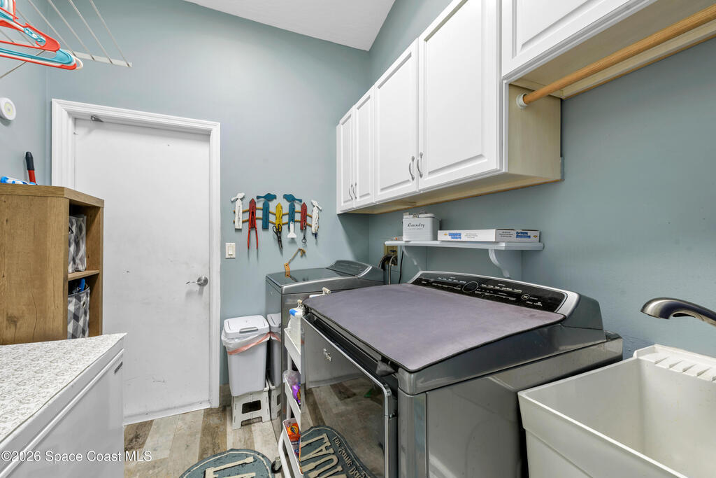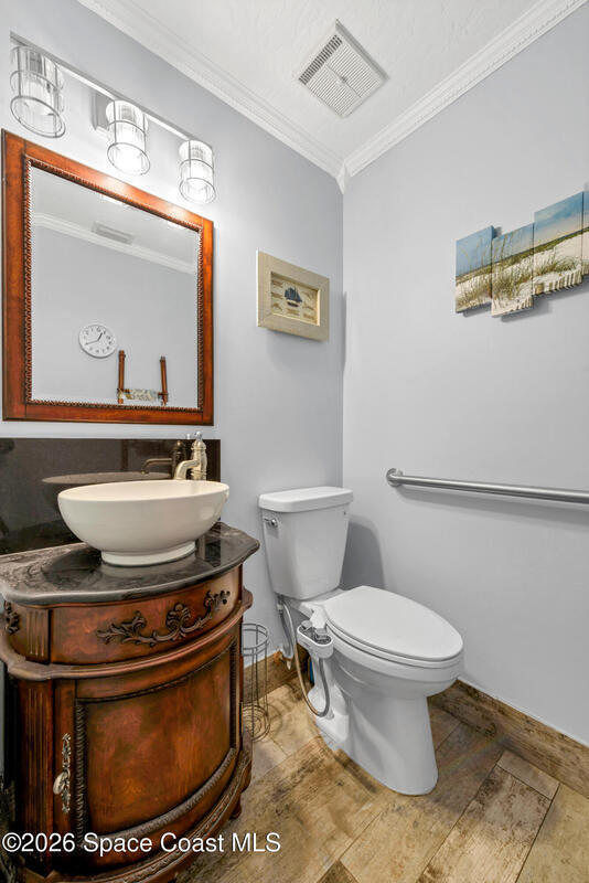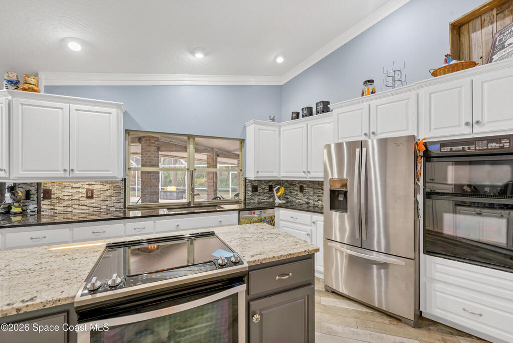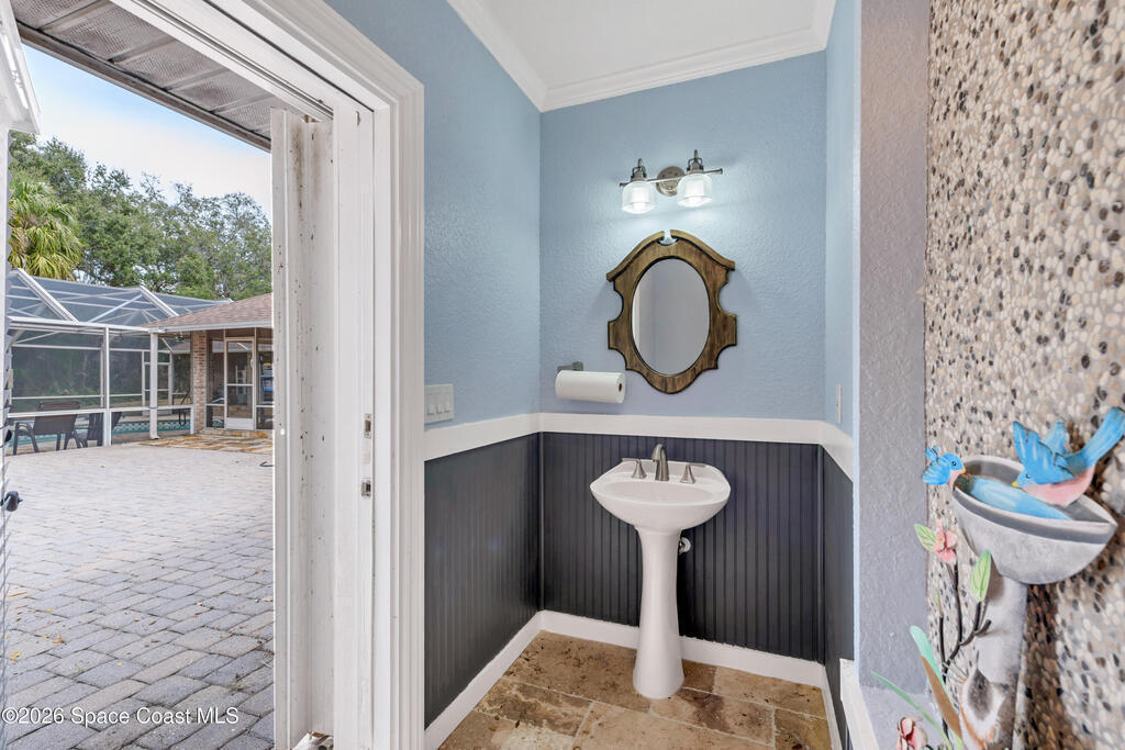 Welcome to 3200 Bird Song Court~ A Multi-Generational home located in the heart of Melbourne. Sitting on 1.0 Acre of tranquil landscape surrounded by mature oaks, this custom- built home has every amenity one could want! This sprawling private estate offers over 3600 Sq ft of living space, 5 bedrooms, 3 full baths, 2 half baths, ((Two)) Oversized 2-car garages, a separate In-law suite w/ private access, and a large private saltwater pool surrounded by custom stonework. Recent upgrades include a complete Re-Roof in 2024, Remodeled Kitchen w/ a custom Island, granite tops, SS Appliances, high-end master bathroom with walk-in shower, Mirabelle Jetted tub, 6 X 36 Porcelain Tile Floors throughout, 200 Amp Service, 72-gallon water heater, crown moldings, custom cabinetry, and custom woodwork throughout the home. Complete accordion style shutter system on the home & a maintained 22 KW Generac generator (2018) give storm safety peace of mind. Transferable Termite Bond. NO HOA