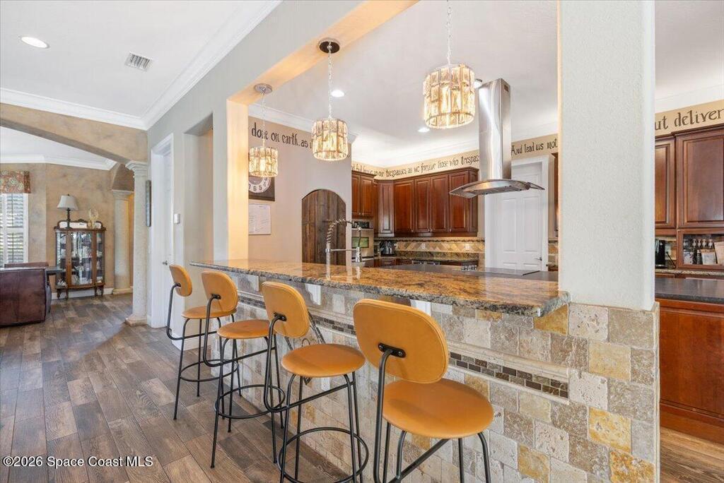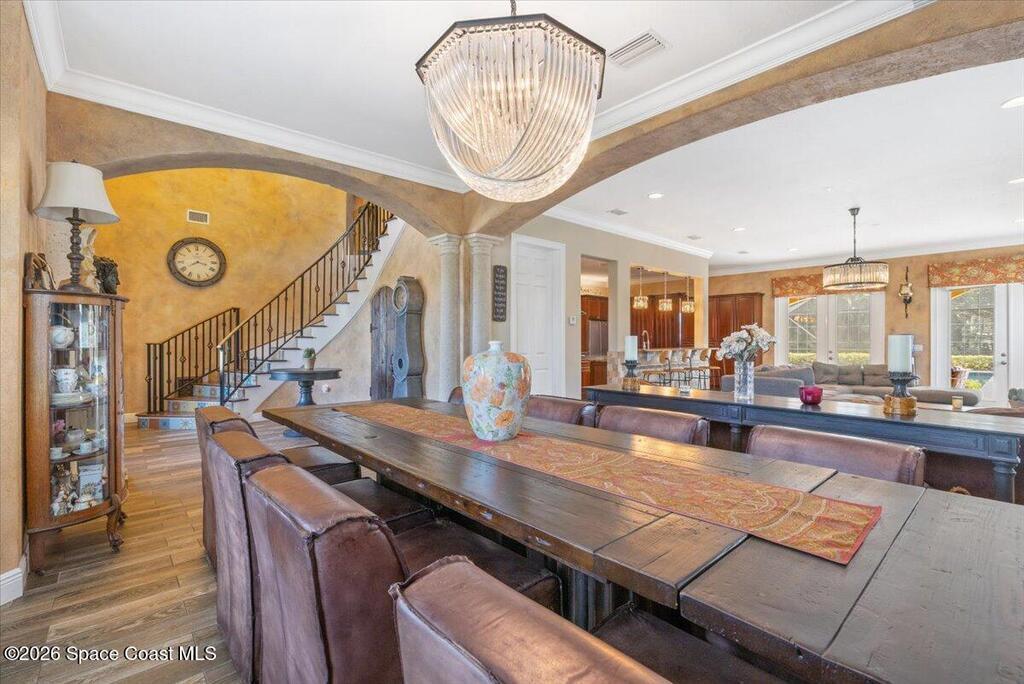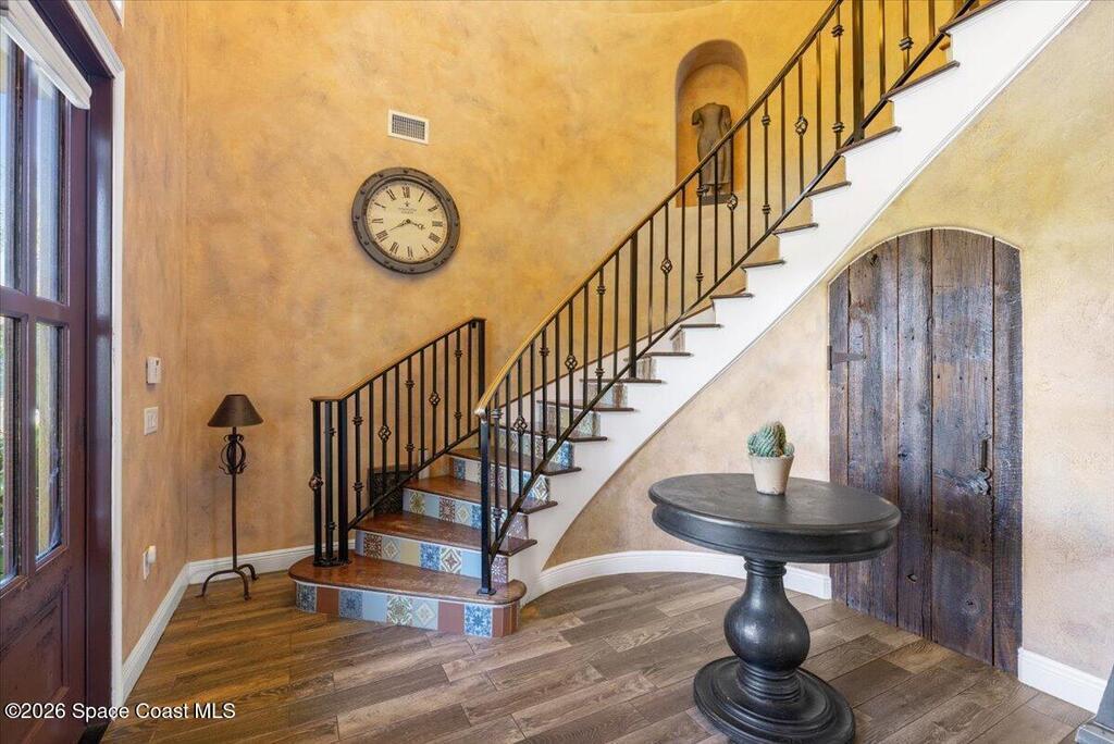 Stunning Mediterranean-style home in a gated Vero Beach community offering 3,599 sq ft of move-in ready living space. This spacious 4-bedroom, 3.5-bath residence features a desirable primary suite on the main level and an expansive upstairs living area ideal for entertaining or flexible living. Situated on a large lot, the home showcases a huge screened pool and enclosure, creating a private outdoor retreat perfect for Florida living. Thoughtfully designed with generous living areas and classic architectural details, this home delivers space, style, and comfort in a secure, sought-after setting.