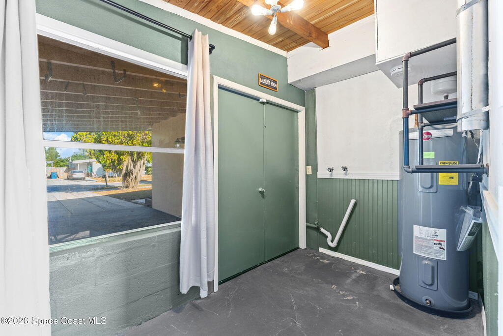 Solid concrete block 3-bedroom home in NE Palm Bay, just minutes from the Turkey Creek boat ramp and park. The home includes a new AC (2024) and new water heater (2024).Interior features include terrazzo, tile, and wood-look tile flooring, fresh paint, and an enclosed Florida room with an updated laundry area that adds functional living space and overlooks the backyard. Front and back landscaping has been refreshed, improving curb appeal and outdoor use.Located in an established neighborhood with city water, city sewer, sidewalks, and convenient access to kayaking, biking, and nearby nature trails.