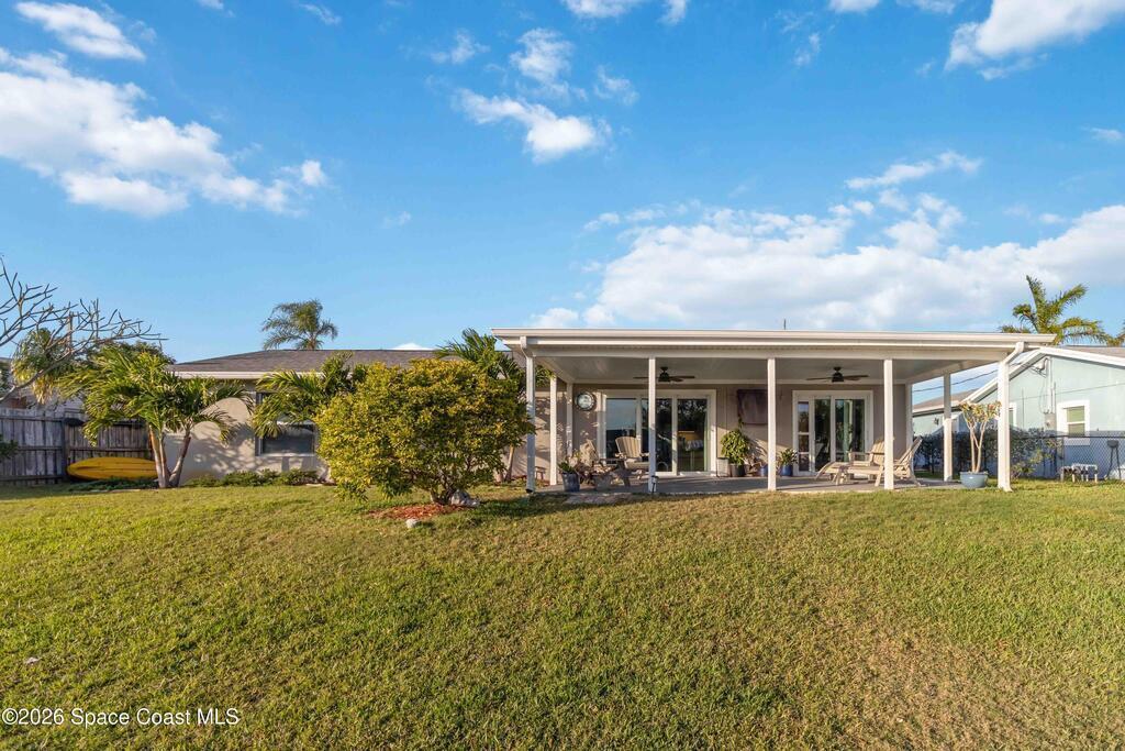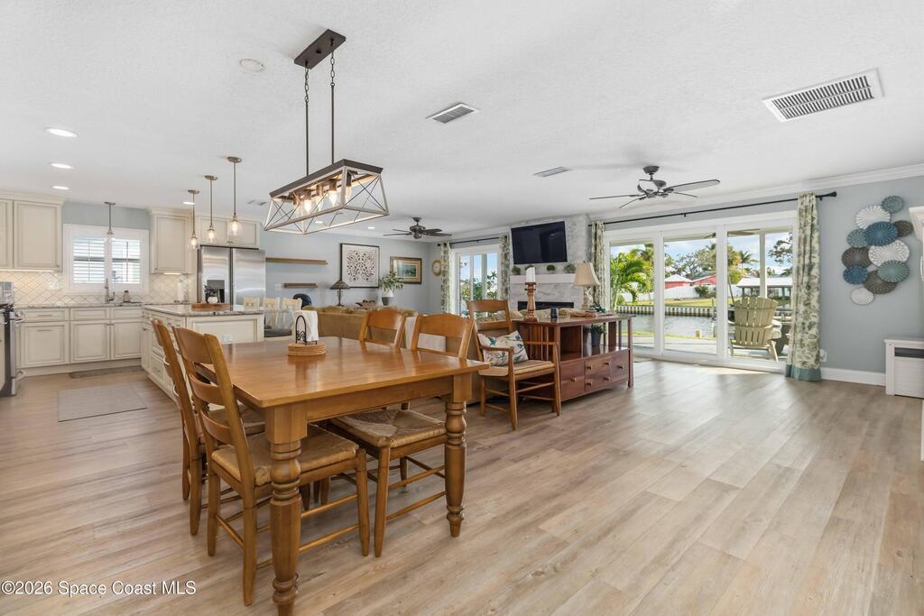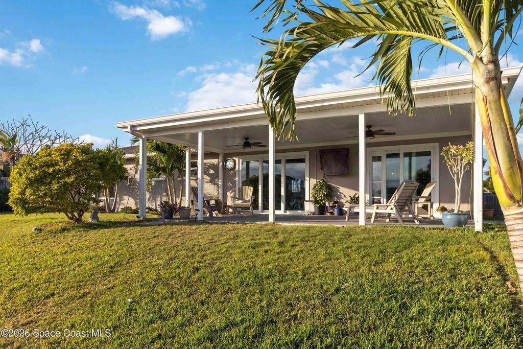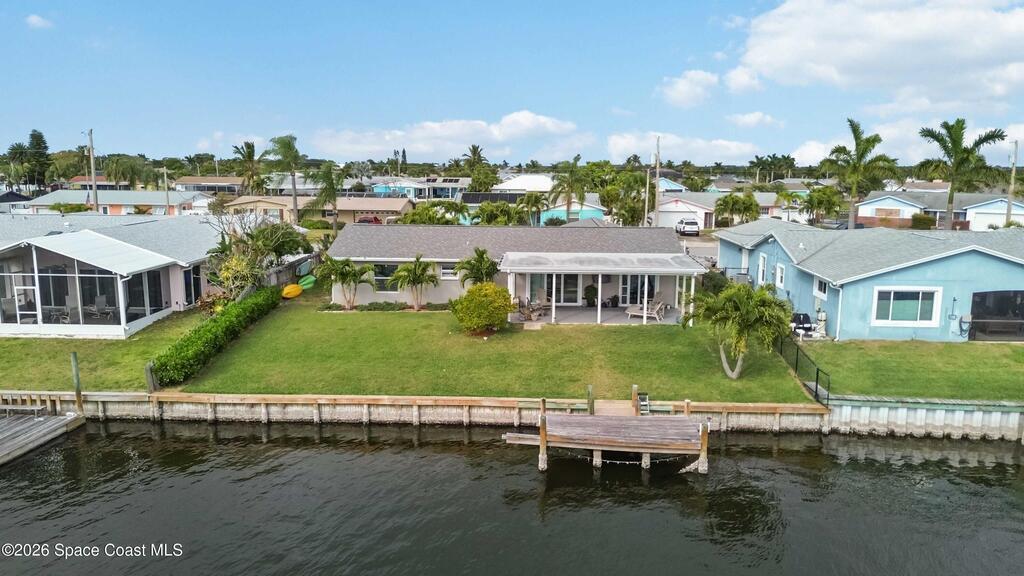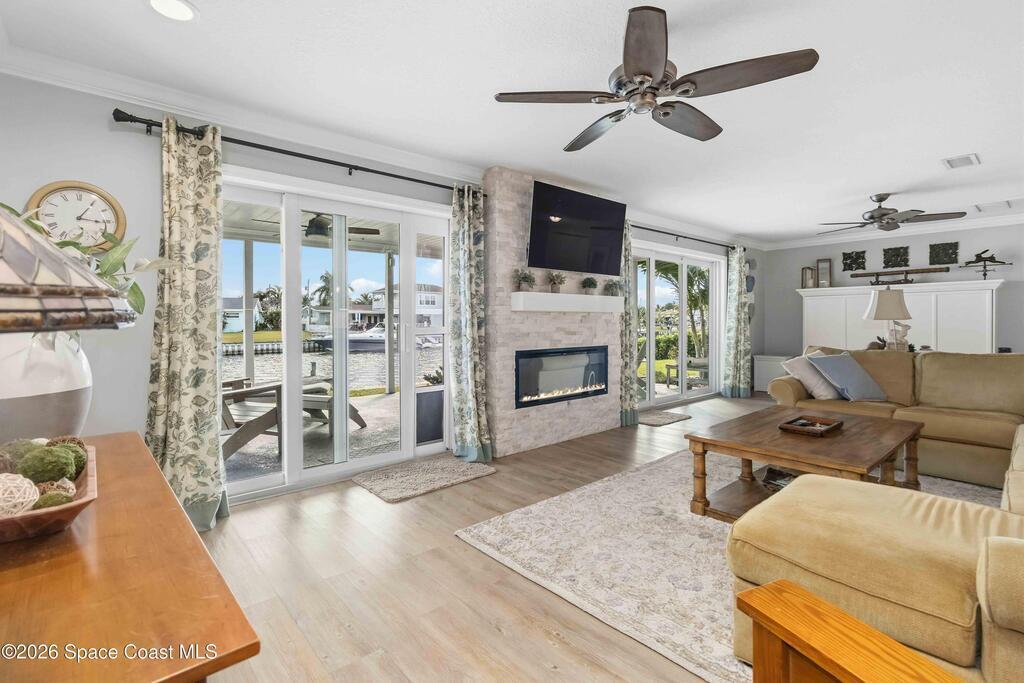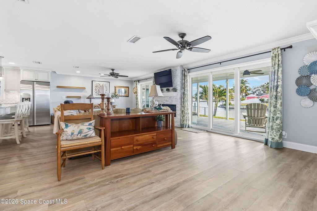 Welcome home! Enjoy waterfront living at its finest in the heart of Merritt Island! Set on a deep, wide canal along Sykes Creek, this boater & angler's dream offers quick access to open water & stunning views. The fully renovated kitchen & living area feature stainless appliances, gas range, luxury vinyl plank floors, custom cabinetry, built-in pantry, crown molding, granite counters & an electric fireplace. Impact windows throughout (2017), updated electrical (2017), and a newer roof (2019) add peace of mind. Owner's suite boasts water views & private bath with tiled walk-in shower. Enjoy the breeze off the water from your open-air patio, the perfect place to relax or entertain! Artesian well for irrigation. No HOA! Washer & new gas dryer stay with the home. Canal is directly across from the Ulumay Wildlife Sanctuary, a 600-acre conservation area, ideal for bird watching, biking, kayaking & hiking. 20 min to KSC, NASA, Blue Origin & SpaceX, 15 min to the beach & 50 min to Orlando!