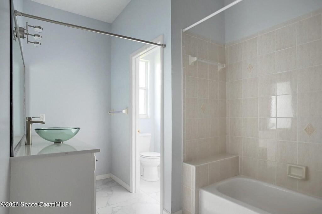 Welcome to quiet and serene Village of Tramore and this beautifully renovated one level villa with a private courtyard. HOA does all exterior landscaping, grass cutting and paints the exterior of the buildings every 7 years(just painted in 2025) AND includes internet/cable. Plus a gated beach access with shower and it's only $325 per month. Home includes a two car garage, open and airy with lots of large windows to let in all the natural light. Renovated throughout w/many upgrades. Open concept floorplan with well-appointed kitchen, all new appliances and a large island for entertaining. Huge primary bedroom suite boasts slider to courtyard doors, walk-in closets, fabulous master bath with double barn doors, soaking tub, and separate shower. Gated deeded beach access just a 3 minute walk to the beach. Convenience of the Publix and Driftwood Plaza are just minutes away.