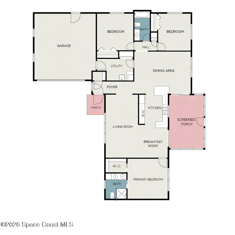Bathroom 1 , Bedroom 1 , Bedroom 2 , Dining Room , Family Room , Florida Room , Kitchen , Living Room , Primary Bathroom