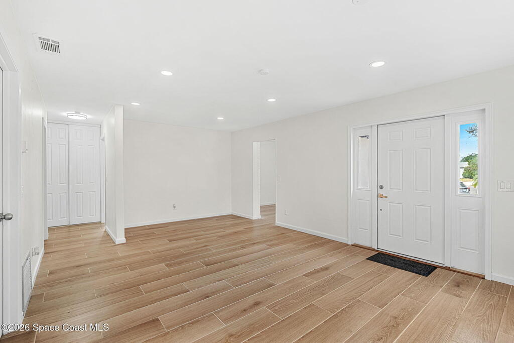Over $80,000 in upgrades and permitting on this elevated corner lot with brand new roof and hurricane impact windows. This home features 2025 modern updates and offers true peace of mind with a new architectural shingle roof, hurricane impact windows and doors and a 2024 HVAC system.Inside, enjoy abundant natural light, new wood plank tile flooring and baseboards throughout and an updated kitchen with granite stone countertops, wood shaker cabinetry and brand-new stainless-steel appliances. The primary suite features a spacious closet and a beautifully renovated ensuite with a modern walk-in shower. Guest bedrooms are generously sized, complemented by an updated guest bath with soaking tub, niche detail and new lighting. A bonus room offers flexible space for a home office or den. Set on an elevated corner lot within a cul-de-sac, not a through street, offering added privacy. Just minutes from the beach with easy access to I-95, shopping, dining, hospitals and more!