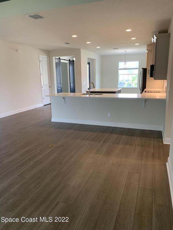 WATERFRONT! This stunning home features 3 bedrooms, a study, 2 bathrooms and a 2-car garage. It comes loaded with upgrades, including a refrigerator, washer, dryer and blinds. The property boasts reclaimed water for irrigation and is equipped with on Q technology. Laminate flooring runs through the home, except in the bedrooms. Enjoy the spacious 10 x 27 screened covered porch, all within a secure gated community and featuring an aluminum-fenced yard.