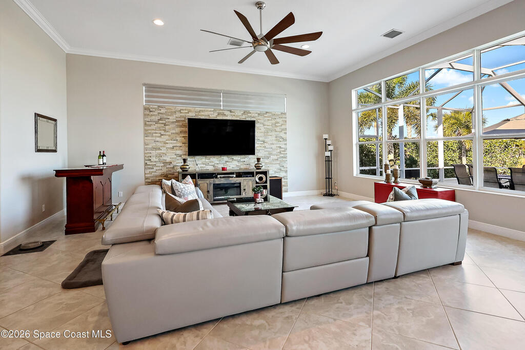Luxury 2019 Lake home in Sebastian. 4/3/2 GHO Home. Exquisite Primary MBR overlooking the lake w/an en-suite BTH that has been thoughtfully integrated elevating the suite into a true sanctuary. Impact windows, Upgraded cabinetry in this beautiful kitchen overlooking a Great Room with lots of windows offering a generous living space filled with natural light and seamless indoor-outdoor flow. Luxury countertops, upgraded diamond pattern tile layout throughout main areas. No carpets. Impact windows, Flat Tile roof, House Generator w/500 Gal. Gas Tank. Premium pool finishes like 'Wet Edge Technology' made w/natural stone for a durable, long-lasting surface and Magic Bowl Water Effects to create a magical back yard for all to enjoy!