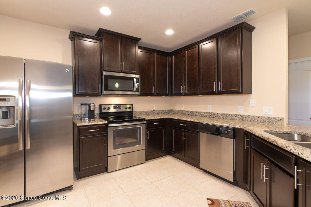 Light-filled coastal townhome in the gated Montecito community of Satellite Beach, located just minutes from the Atlantic Ocean. This move-in-ready residence offers over 2,100 square feet of open living space with a functional layout ideal for everyday living and entertaining. Interior features include granite countertops, tile flooring throughout the main living areas, a spacious primary suite with en-suite bath, well-sized secondary bedrooms, a versatile upstairs loft, and a covered patio for outdoor living. Montecito offers resort-style amenities including a community pool, fitness center, clubhouse, and professionally maintained common areas. Lawn care is included. Conveniently located near beaches, shopping, dining, and top-rated schools. Ideal for full-time residence or lock-and-leave coastal living.