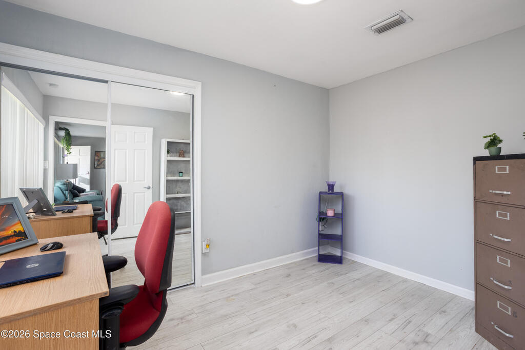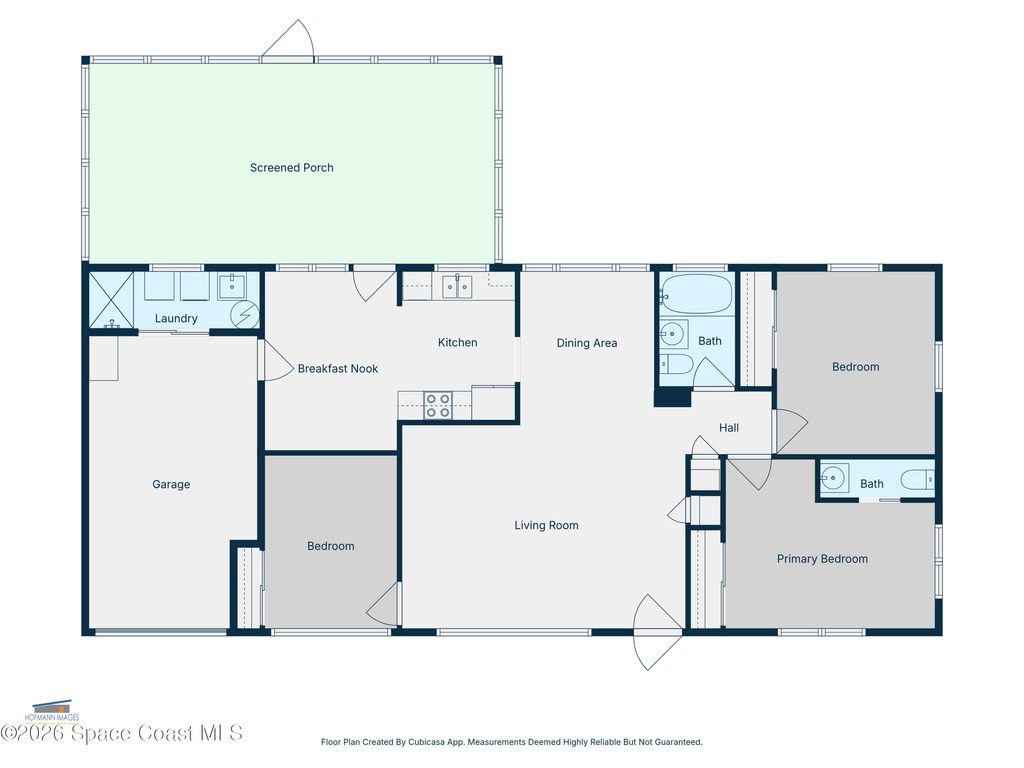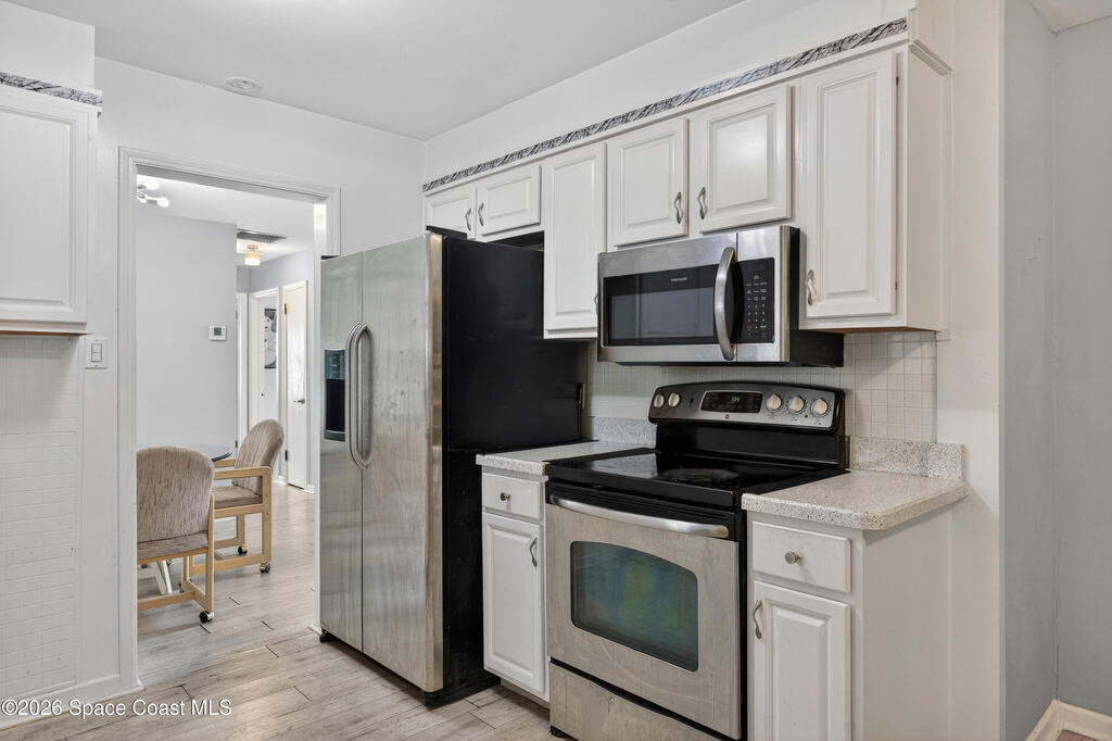 Location, location! This well-situated Central Melbourne home is ideally located near Holmes Regional Hospital, Melbourne Square Mall, Downtown Historic Melbourne, and Crane Creek Reserve (Public) Golf Course. The home features a desirable split floor plan with vinyl plank flooring throughout, except baths. The spacious kitchen includes stainless steel appliances and a large eat-in area and workspace. There is an informal dining room conveniently located just off the kitchen--perfect for entertaining. The guest bathroom features a tub/shower combination. Step outside to enjoy the covered screened lanai, which overlooks a large & fully fenced backyard--ideal for relaxing or outdoor gatherings. Additional highlights include a fully attached one-car garage with a private shower located in front adjacent to the washer & dryer. Major updates provide peace of mind, including a new asphalt single roof (2025) and a new hot water heater (2025).