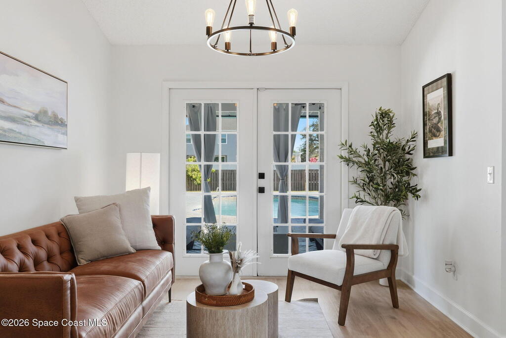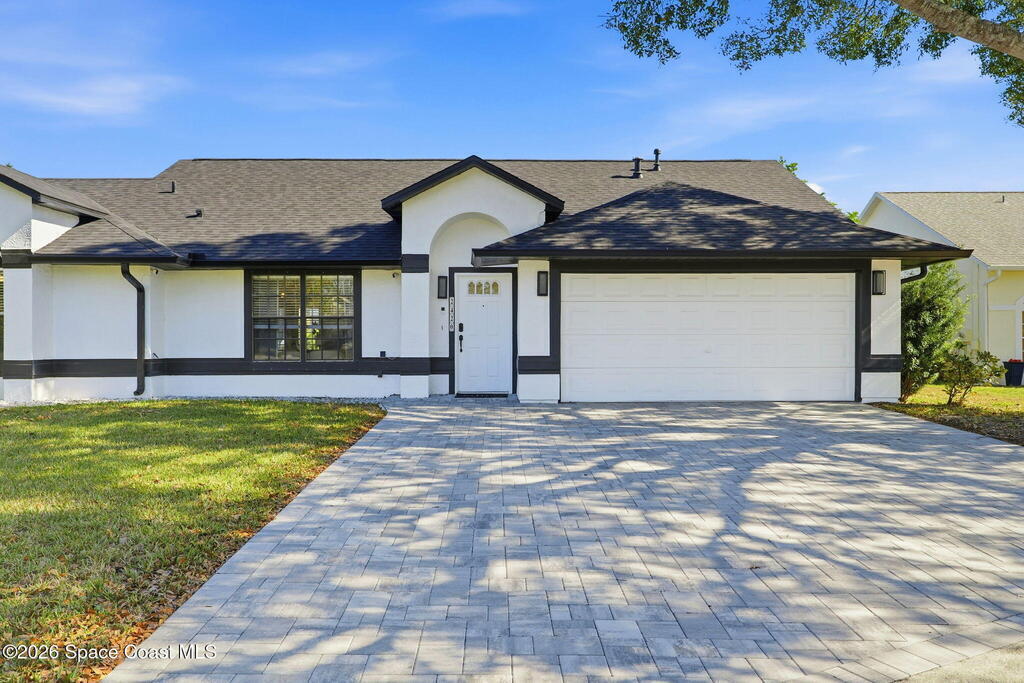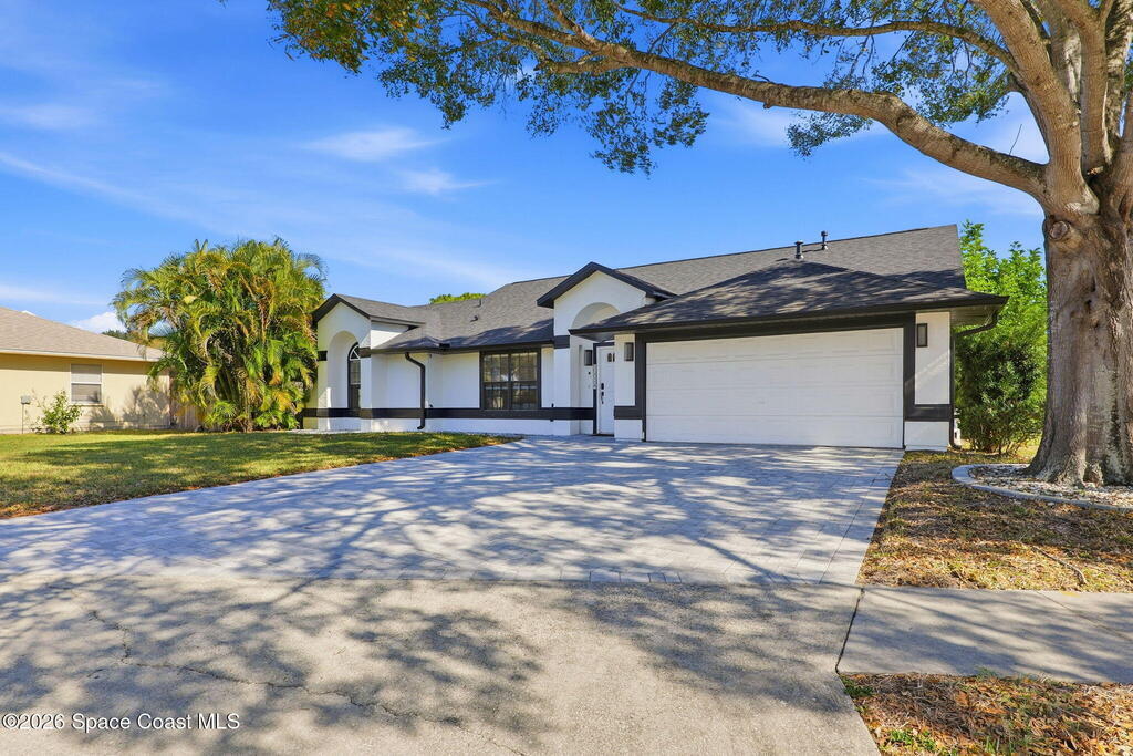Located in the Wickham Forest neighborhood, this beautifully remodeled 3-bedroom, 2-bath, 2-car garage home sits on an exceptionally rare .34acre oversized lot, offering expansive front and backyard space with full fencing for privacy. The outdoor living area features a large freshwater swimming pool, newly paved pool deck, and a spacious covered lanai--perfect for entertaining or relaxing. Inside, the home showcases brand-new luxury vinyl plank flooring throughout with no carpet, vaulted ceilings, and skylights that fill the space with natural light. The updated kitchen offers granite countertops, white shaker cabinetry with soft-close hardware, gas range, pantry, and breakfast nook, all overlooking the backyard and pool. The primary suite features vaulted ceilings and an ensuite bath with walk-in shower, separate tub, and granite vanities. Additional upgrades include a freshly painted interior and exterior, brand-new paved driveway, upgraded lighting and fixtures. 2yr old roof. Home