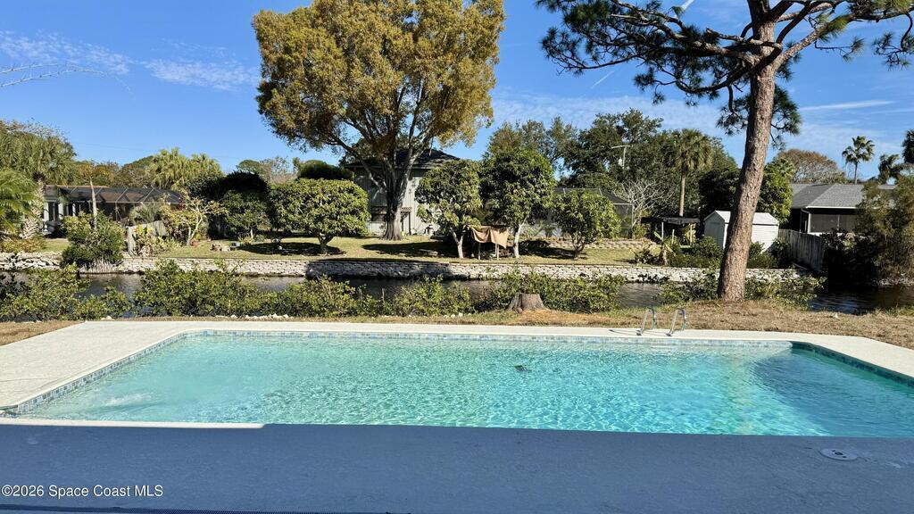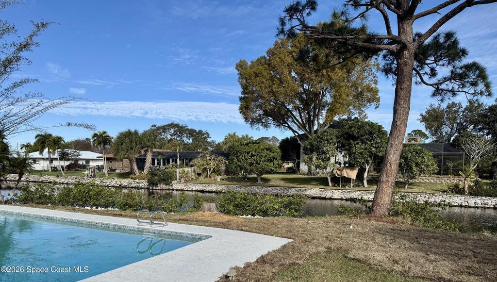 Waterfront POOL home also offers neighborhood access to Indian River with boat ramp and dock. Located in desirable South Merritt Estates Plantation, this beautifully updated property features new appliances, plank tile throughout, granite counters and wood cabinets in bathrooms and kitchen, with a 2-car garage, large open pool and a fenced yard sitting on .64 acres and a canal front. Lawn and pool care provided, NO PETS. NO SMOKING