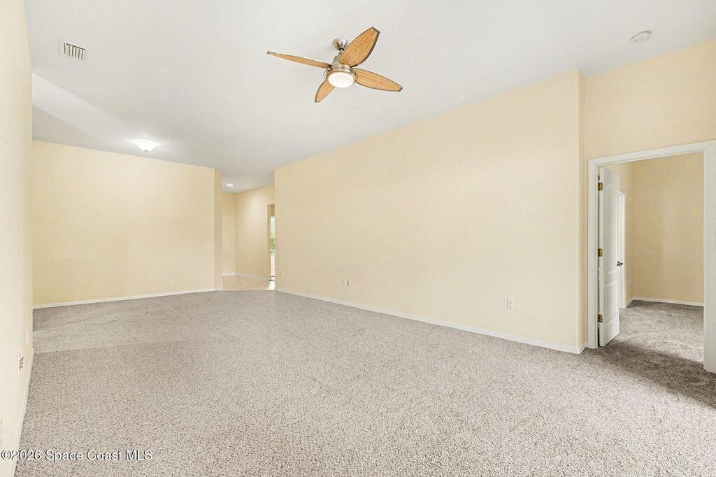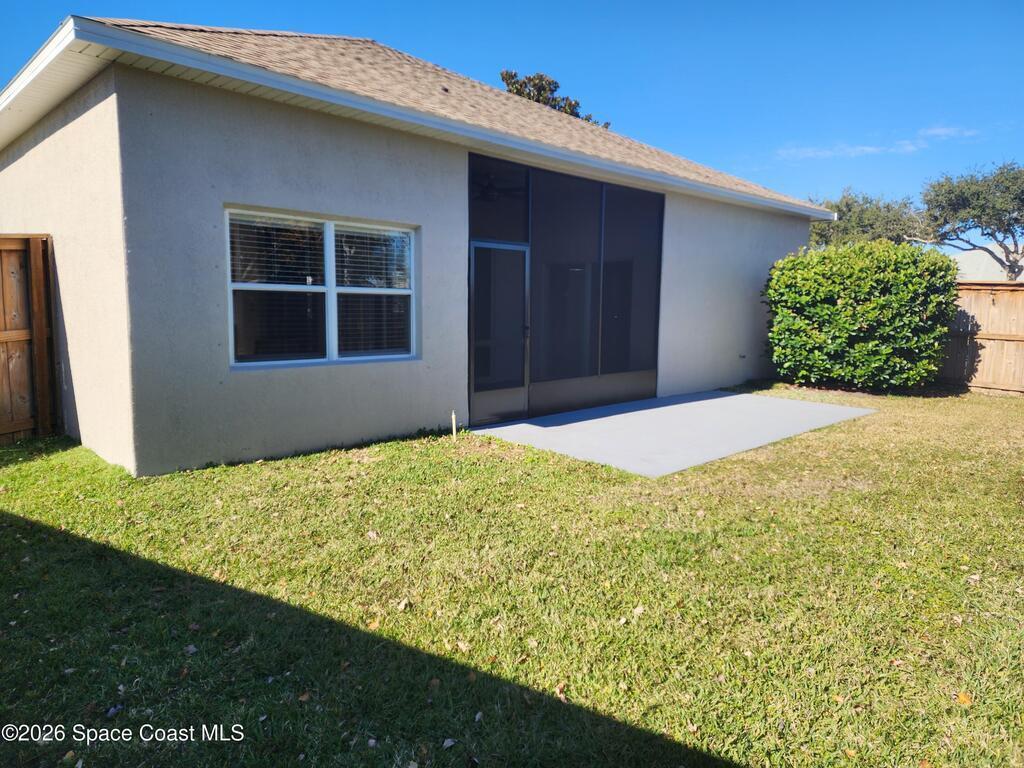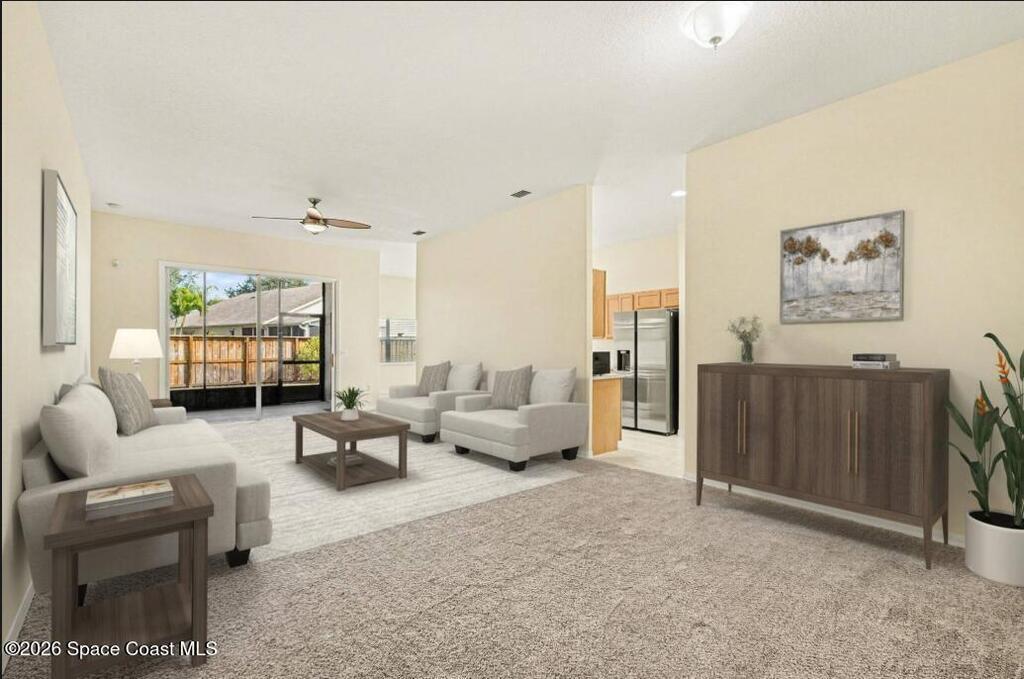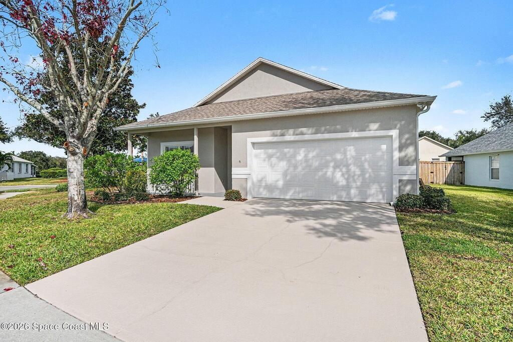Welcome to Deer Lakes, a quiet and desirable community ideally located just off Wickham Road, only one light from The Pineda Causeway for easy access to beaches, major employers, and shopping. This well-maintained Key West floor plan home sits on a premium corner lot, chosen by the original owners for its close proximity to the community pool, playground, and convenient neighborhood access. Inside, you'll find a thoughtfully designed layout featuring a primary suite with a walk-in closet, soaking tub, separate shower in the primary bath. The interior has been freshly painted, and new plush carpeting with upgraded padding has been installed throughout the bedrooms, living room, and dining room. The home's positioning on the lot provides a private, fenced backyard. Additional updates include stainless appliances, new window treatments, with panel blinds ordered and on the way. Roof was installed in 2020, A/C in 2023. water heater in 2016. There is plenty of
