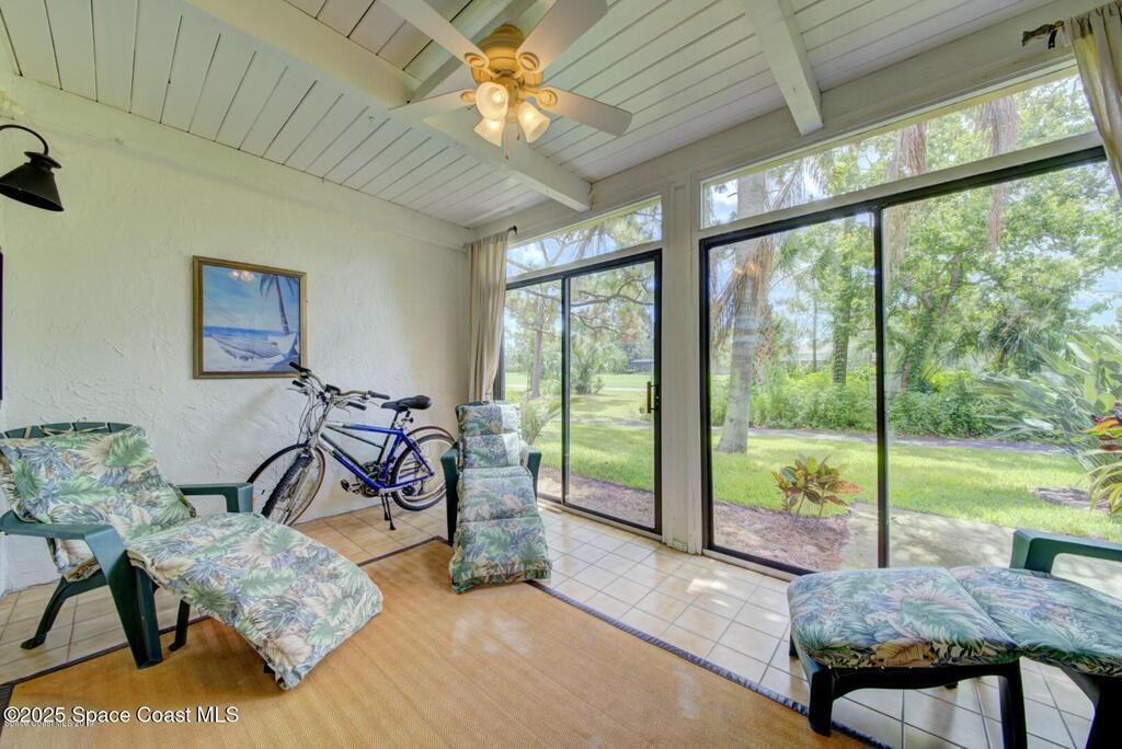 Enjoy views of the 16th & 17th holes of the exclusive Suntree Country Club's Classic Golf Course from this 2 Bedroom, 2 1/2 Bath townhome. There is a spacious downstairs with kitchen, half bath, dining area & great room leading to a private screened porch perfect for morning coffee. Upstairs you will find two master suites, one with a private balcony overlooking the golf course. Each have their own full baths and plenty of closet space. Indoor laundry for added convenience. New roof in 2020. Low dues include exterior maintenance, insurance, roof, and landscaping. Optional membership available to the country club for added amenities. Furniture is negotiable making it perfect for snow birds or first time buyers. Great location close to shopping, restaurants, just minutes to the Atlantic Ocean and 45 minutes to Orlando. New Balconies being replaced in 2026.