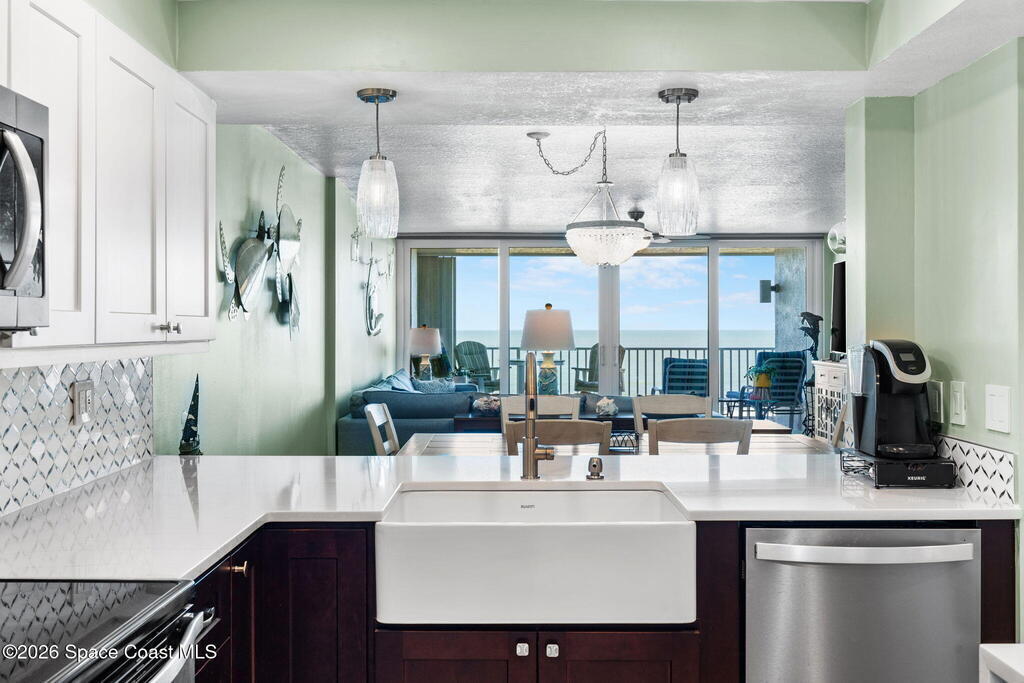 Welcome to Majestic Seas--one of Cocoa Beach's most sought-after oceanfront condominiums- and an unbeatable location. This beautifully updated residence has been fully renovated throughout! Stunning kitchen w/ quartz countertops, new cabinetry, & all-new appliances, blending style and function for everyday living or entertaining. Incredible direct ocean views, breathtaking sunrises & exciting rocket launches right from your large, private balcony! A versatile flex space with modern barn doors offers the perfect solution for a home office or third bedroom when guests arrive. Located on iconic Ocean Beach Boulevard, you're just steps from everything - the Cocoa Beach Pier, restaurants, bars, shopping, and Publix--all within easy walking distance. This is a well-maintained, financially strong building, offering peace of mind and resort-style amenities including: heated pool, beach access, fitness center, clubhouse, Private entry deeded garage and storage. AC one year, furniture negotiable