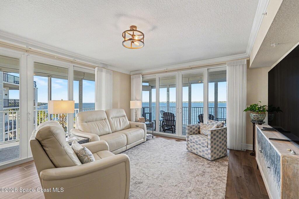 This 7th-floor northeast corner residence presents a refined coastal luxury lifestyle, offering four bedrooms and three full baths, including 2 private en-suite retreat. Floor-to-ceiling windows frame panoramic Indian River views, where golden sunrises, playful dolphins, and awe-inspiring rocket launches create a daily spectacle.Designed with model-home sophistication, the residence features fresh designer paint tones and a seamless open-concept layout that enhances light and flow. The upgraded chef's kitchen is both elegant and functional, showcasing custom extended countertops, a movable statement island, and generous custom cabinetry--perfect for entertaining or everyday luxury living.Step outside to a private marina just moments away, with boat slip ownership or rental options available, offering effortless access to waterfront adventures. Electric roll-down storm shutters provide both peace of mind and modern convenience.The impeccably maintained building is FULLY funded
