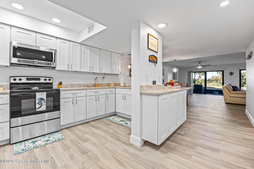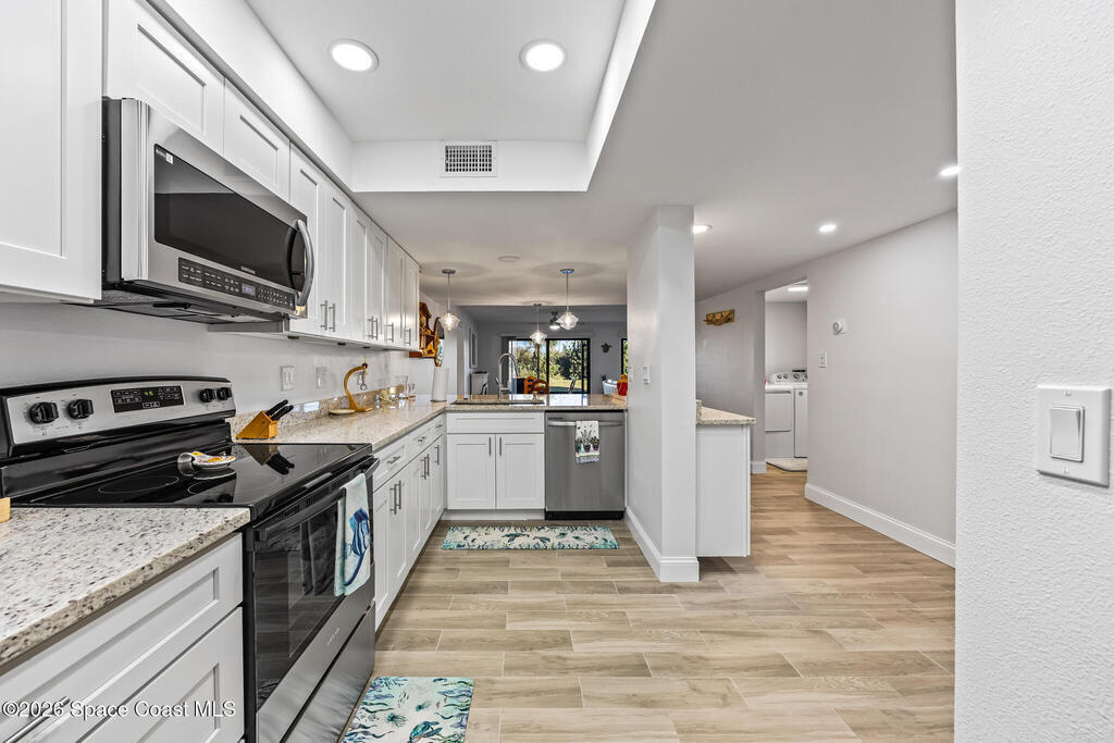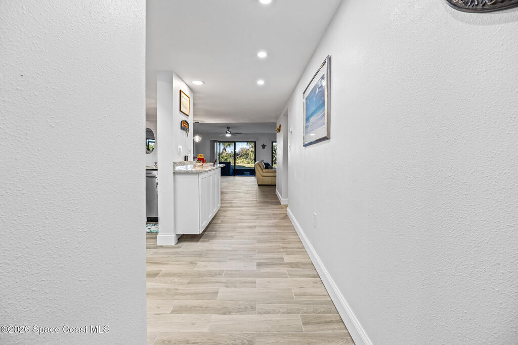 Welcome to this oceanfront, first-floor condo in the heart of Cocoa Beach. Step out from your screened back porch and, in less than a minute, have your toes in the sand. This unit has been completely remodeled from top to bottom, including new plumbing, electrical, hurricane-impact windows, AC duct work, tile flooring, kitchen, and bathrooms. The entire condo has been fully rewired with CAT6 ethernet and coaxial cable, and all interior drywall has been replaced with green board. The condo building's roof was replaced in 2025. This spacious unit offers the perfect blend of comfort, quality, and unbeatable beachfront living. The unit includes a one-car garage. Enjoy resort-style amenities including a pool, fitness center, sauna, pickleball, and tennis courts. Furniture is negotiable.