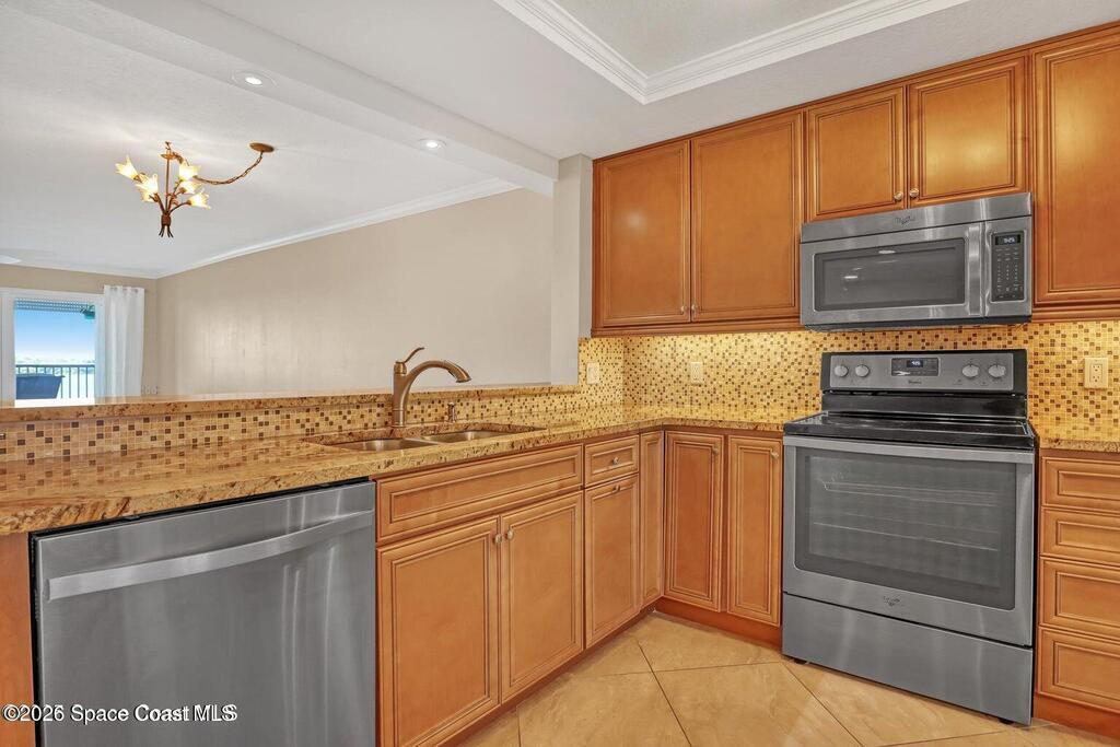 Gorgeous direct riverfront condo in the heart of Cocoa Beach! Spacious living room and dining room with sliders that open up to the balcony overlooking the river. Enjoy your morning coffee watching the dolphins play, and your evening cocktail watching the sunset! Tile throughout, walk in closet in master bedroom, stainless appliances in the kitchen, washer and dryer in the unit and one car garage. Resort like amenities include fitness center, pool, sauna, tennis courts, etc. Walk to the beach, shops and restaurants. Doesn't get much better than this!
