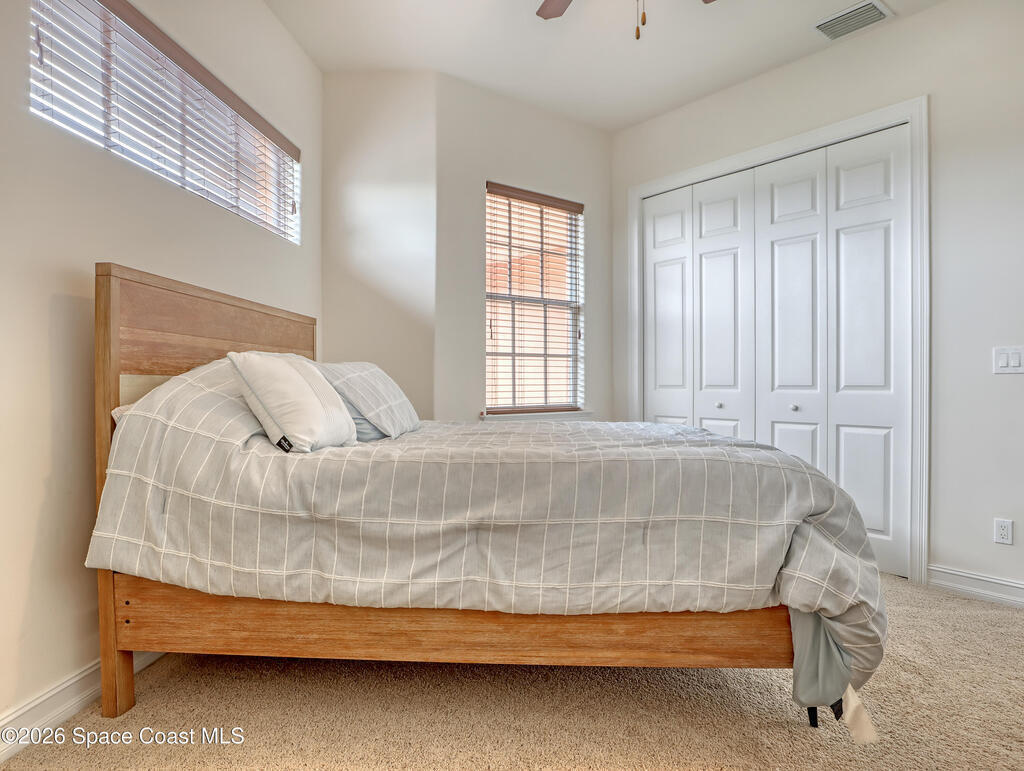 Maintenance free & minutes away from the Ocean. Available for 6 or 12 months. Lawn care & irrigation included. Washer & Dryer. Gated community with a pool. All 3 bedrooms are upstairs. Beautiful kitchen with Stainless Steel Appliances, Granite Counter, Backsplash & soft close Cabinets. 1st floor has tile throughout. Open concept with high ceilings. Large family room, dining room, walk in pantry & a 1/2 bathroom also found on the 1st floor. Enjoy your outdoor deck with tall screen enclosure & fenced in yard. 2nd floor features the Master Bedroom. Generously sized walk in closet. Master Bathroom has 2 vanities with granite, jetted tub & stand alone shower. Master bedroom & bathroom have sliders that lead out onto a balcony. Laundry room is upstairs. Carpet upstairs except for one of the bedrooms. 3 bedrooms in total upstairs & 2 full bathrooms. 2 Car garage with large & wide paved driveway with ample room for parking. Close to Eau Gallie Causeway, A1A , beach, shopping and school.