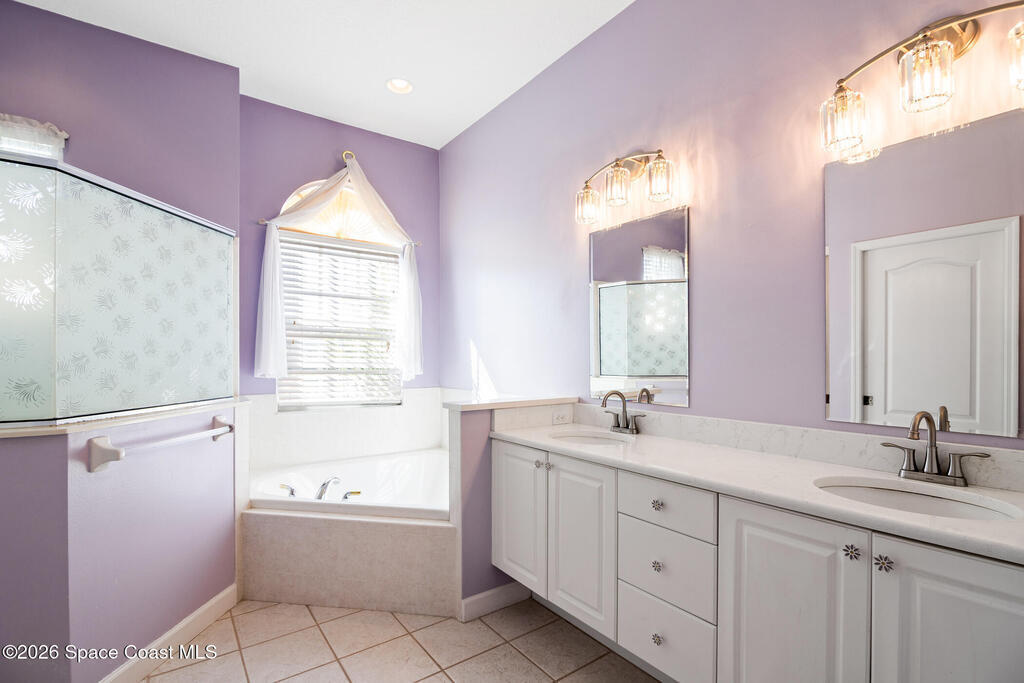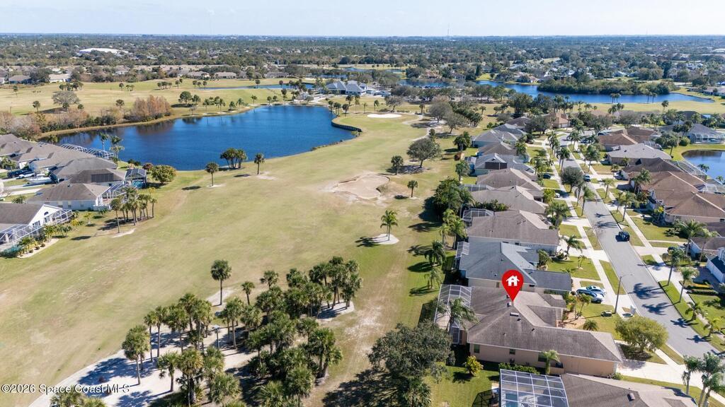 Located in the coveted Canterbury neighborhood within the Viera East Golf Course Community, this well-appointed home sits on a premium golf course lot with beautiful views. The thoughtful floor plan offers three bedrooms, two bathrooms, and a convenient home office. The living room, family room, and owner's suite all open to a massive under-truss porch with an extended lanai; perfect for entertaining and enjoying the serene course setting. The spacious kitchen features timeless wood cabinetry, a newer French door refrigerator and microwave, a large island for seating or gathering, and a charming, mitered window in the breakfast nook, while overlooking the spacious family room with French doors leading to the porch. The owner's suite includes a walk-in closet and an ensuite with a raised-height dual-sink vanity, corner soaking tub, and walk-in shower. A private hallway leads to two generously sized guest bedrooms and a guest bath. Additional highlights include a large laundry room with