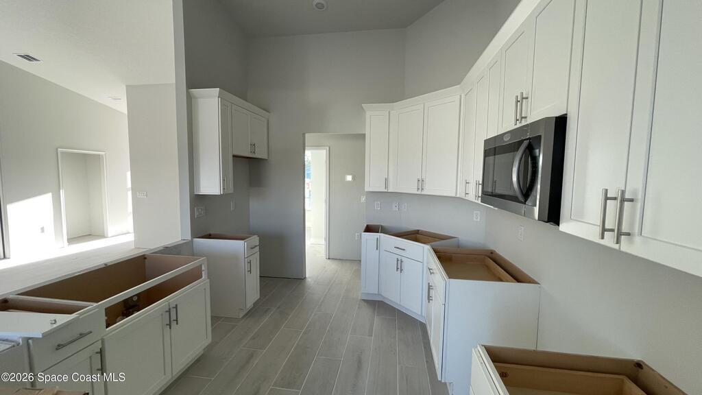 New Construction-Nearing Completion in next 30 Days! Brand New Energy Efficient Home with Full Warranty! Beautiful upgrades throughout! Located in Peaceful Unit 46 of Palm Bay. The quality offered in this home is second to none. Carefully designed features include an Open plan concept with high vaulted ceiling in the main living areas, the kitchen is a dream w/ high quality wood 42'' upper cabinets with crown molding and decorative handles, beautiful quartz countertops, designer faucet & single basin sink. Equipped with quality stainless steel appliances and a large double door pantry. This 4 bedroom home offers a split bedroom design with plush carpet in all bedrooms & ceiling fans with remotes. The main living area offers Upgraded 9' * 47' hardwood plank porcelain tile. The owners suite has a tray ceiling and beautiful bathroom with double sinks, granite countertops, large tile walk in shower with seamless glass door and a large walk in closet. Other top features:Hurricane Shutters.