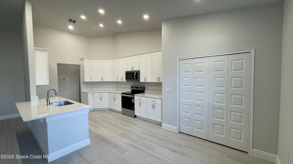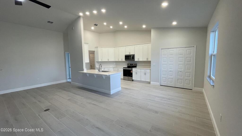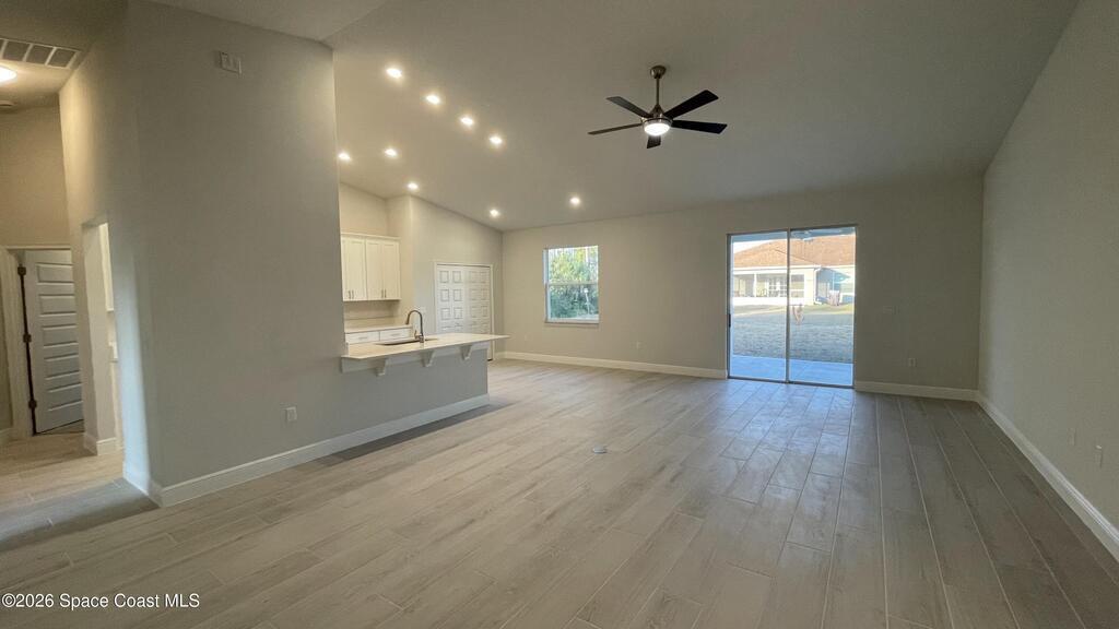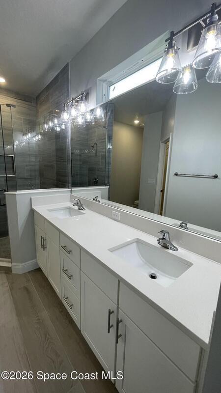 Brand New Energy Efficient Home with Full Warranty! Beautiful upgrades throughout! Located in Peaceful Unit 46 of Palm Bay. The quality offered in this home is second to none. Carefully designed features include an Open plan concept with high vaulted ceiling in the main living areas, the kitchen is a dream w/ high quality wood 42'' upper cabinets with crown molding and decorative handles, beautiful quartz countertops, designer faucet & single basin sink. Equipped with quality stainless steel appliances and a large double door pantry. This 4 bedroom home offers a split bedroom design with plush carpet in all bedrooms & ceiling fans with remotes. The main living area offers Upgraded 9' * 47' hardwood plank porcelain tile. The owners suite has a tray ceiling and beautiful bathroom with double sinks, granite countertops, large tile walk in shower with seamless glass door and a large walk in closet. Other top features:Hurricane Shutters. City Water.