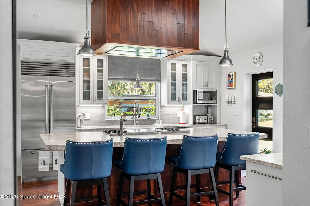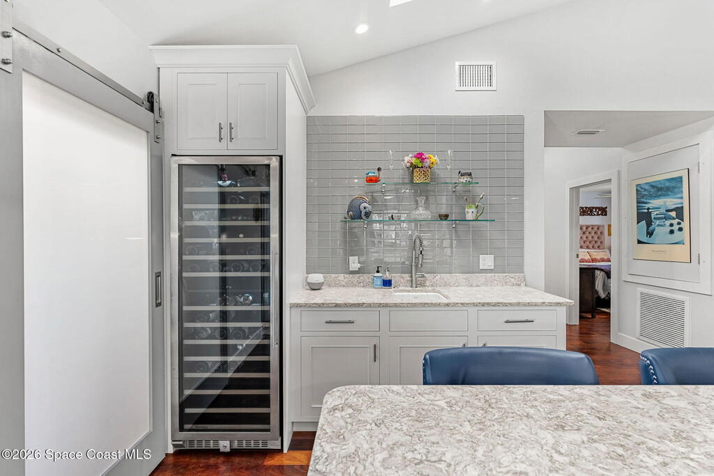 Location! Location! Location! This charming, energy-efficient 3BR/2BA home offers character & convenience just steps from Historic Downtown Melbourne. Completely renovated to the studs/block in 2019 (no cast iron). NO HOA & NO rental restrictions. Ideal as a primary residence, second home, or short-term rental. Enjoy the vaulted ceilings & the rich Acacia wood floors create an open, inviting feel. The chef's kitchen offers white Plato cabinetry, farmhouse sink, 10-ft island w/ Cambria, Wolf dual gas range/double oven, a pot filler, Sub-Zero refrigerator, and a 180-bottle wine cooler. The oversized primary suite offers dual sinks, a Claw tub, and a walk-in shower w/ w rain head. Impact, energy-efficient windows/doors throughout. Enjoy exceptional outdoor living w/ a breezeway, wraparound porch, screened rear patio bar w/ plumbing, electric, & natural gas, plus a spacious fenced-in yard fenced in yard w/ a Concrete pad for boat/ RV parking. Prime location in downtown Melbourne.