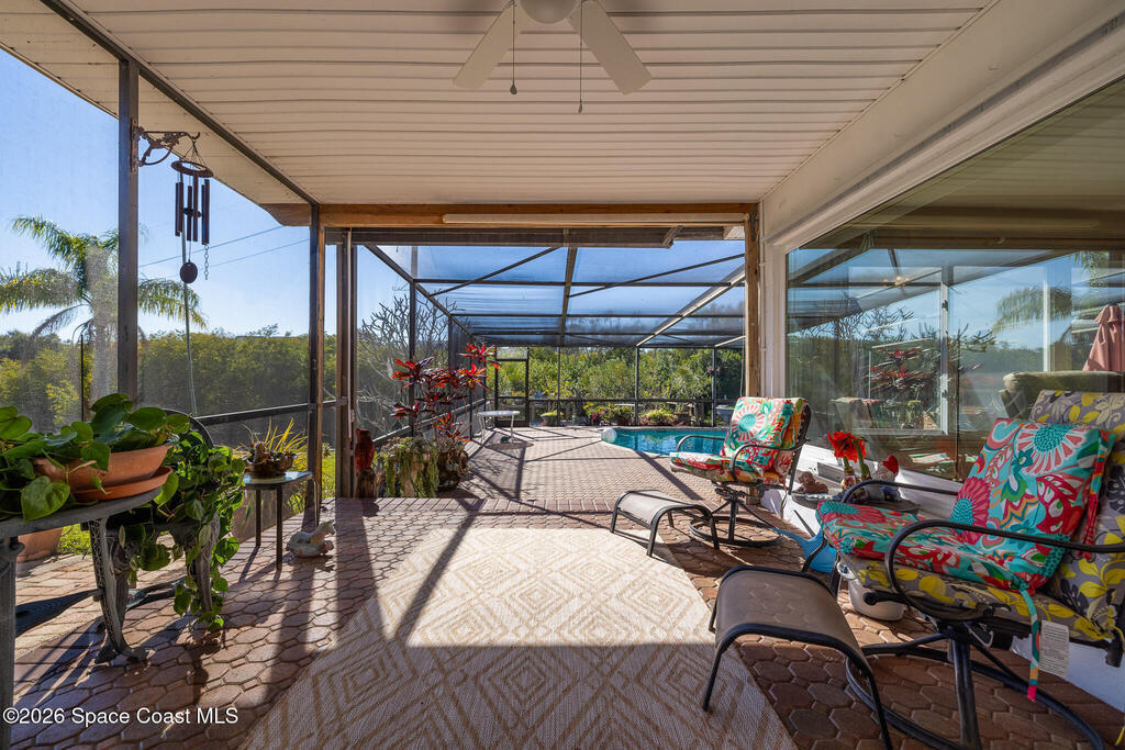 Tucked away in a quiet, no-HOA neighborhood, this move-in-ready 4-bedroom, 3-bath home is a peaceful sanctuary on the Eau Gallie River--minutes from the Eau Gallie Arts District and just 3 miles to the beach. Tranquil koi ponds with a waterfall welcome you home. Full of character and warmth, the home features a wood-burning fireplace, porcelain plank flooring downstairs, and hardwood floors upstairs. The upstairs primary suite opens to a private terrace overlooking the river. Enjoy a private saltwater, solar-heated pool--one of the largest residential pools in Brevard County--completely redone in 2025. The yard offers room for a floating dock, while protected wetlands behind the home provide lasting privacy. Updates include a new roof (2025), fresh paint, and new AC pump (2026). Additional features include an indoor laundry room, 2-car garage, shed, and large driveway with room for RV or boat parking. A rare blend of privacy, character, and location--this is Florida living at its finest.