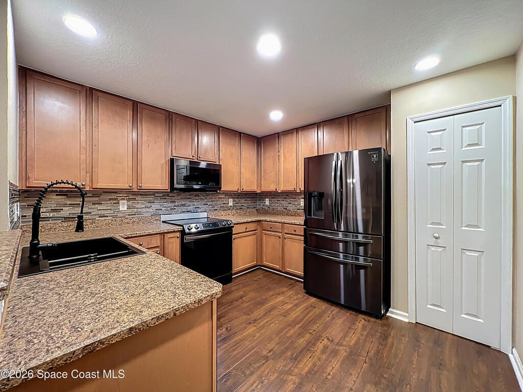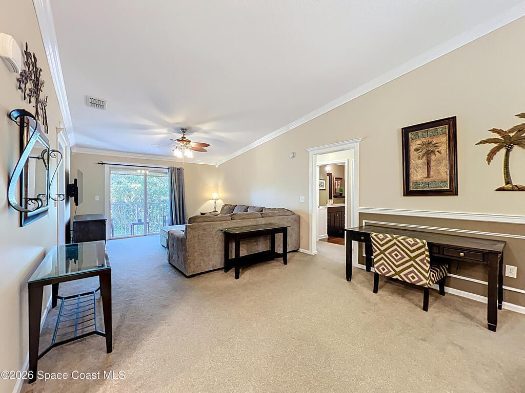 Enjoy comfortable, fully furnished living in a highly desirable Viera/Rockledge area inside the secure, gated community of Jameson Place. This spacious 3-bedroom, 2-bath residence is a premium end-unit offering one of the community's most expansive layouts, plus the added privacy of a corner location.The home features a private ground-level entrance accessible from either the attached garage or front entry, leading up to the main living space where soaring ceilings create an open, airy feel. Inside, you'll notice thoughtful design details including decorative trim work and crown molding that add character throughout the home.The kitchen is equipped with modern stainless steel appliances and flows seamlessly into the main living area, making it ideal for both everyday living and entertaining. Sliding glass doors lead to a balcony with peaceful preserve views, offering a quiet place to relax.This home is fully move-in ready and designed for easy, low-maintenance living.