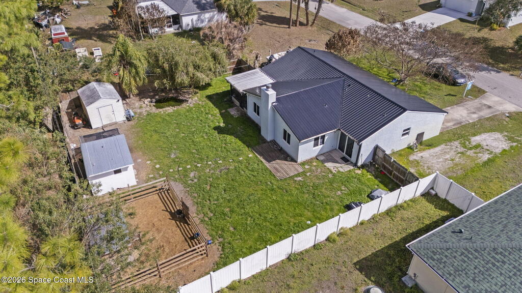 Well-maintained 3BR/2BA home in SE Palm Bay with major recent upgrades. Features a brand-new metal roof with gutters (Nov 2025) and full level-5 impact windows and doors (Nov 2023) for superior storm protection and potential insurance savings. Solid block construction with a functional split floor plan and bright natural light throughout. Located on a spacious lot in an established neighborhood with no HOA, close to schools, shopping, dining, and major roadways. Big-ticket items already done--move in with confidence.