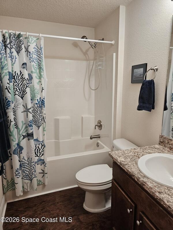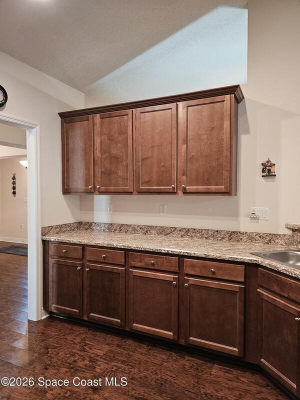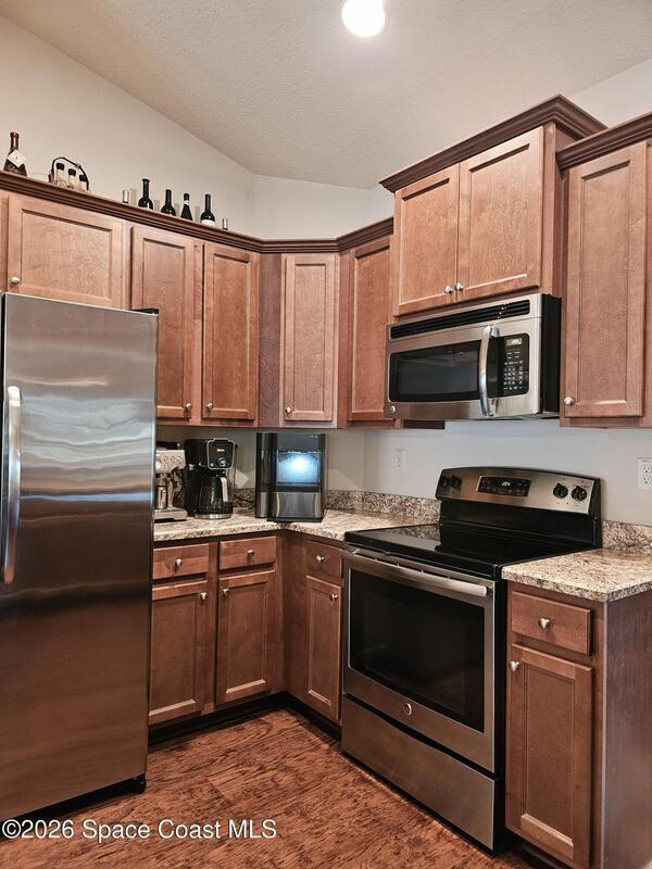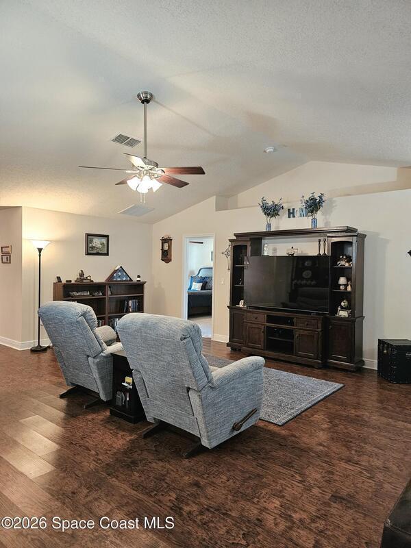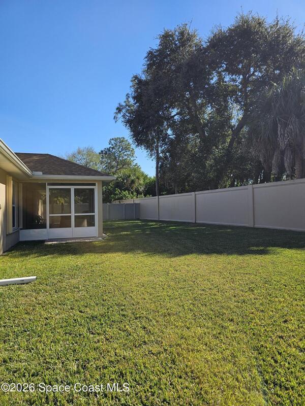 Tucked away at the end of the road, this well‑maintained home offers exceptional privacy while keeping you close to everything West Melbourne has to offer. Thoughtfully designed split floor plan includes three bedrooms plus a versatile flex room--perfect for an office or potential fourth bedroom. Vaulted ceilings enhance the spacious feel of the main living areas, where the family room flows seamlessly into the kitchen, breakfast nook & formal dining room. Stylish, durable luxury wood‑plank vinyl flooring throughout the main living areas & upgraded carpet in bedrooms & flex room. Primary suite features two walk‑in closets & an ensuite bath complete with double sinks, a walk‑in linen closet, & a separate shower. Accordion hurricane shutters for added peace of mind. Outdoor living shines with a screened‑in lanai & spa, newly added paver areas, & a large fully fenced backyard. Additional conveniences include an electrical hookup for a generator, Roof 2023, A/C 2023, HWH 2025