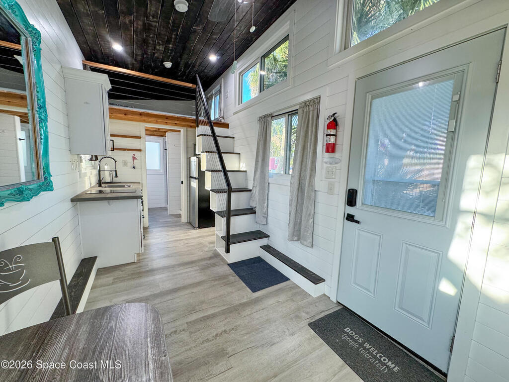 Experience Florida living at its best! This pristine, NOAH-certified tiny living getaway is your ticket to the Space Coast lifestyle. Whether you're looking for a low-maintenance primary residence or a vacation retreat, this home delivers with a fenced yard and ample parking, Double lofts, washer dryer hookups, tons of storage and a bright modern style. Watch rocket launches right from your front yard or head out to enjoy world-class fishing and beaches just minutes away! Perfectly positioned between the Atlantic coast and Orlando's attractions, you are centrally located near major hubs including SpaceX, Blue Origin, Kennedy Space Center, and Patrick Space Force Base. Commuting is a breeze with quick access to the Beachline-528, 520, and I-95, plus an easy drive to MCO Airport. Join a wonderful community with great neighbors and start your sunshine-filled adventure today!All information deemed reliable but not guaranteed to be accurate by list agent/broker/MLS.