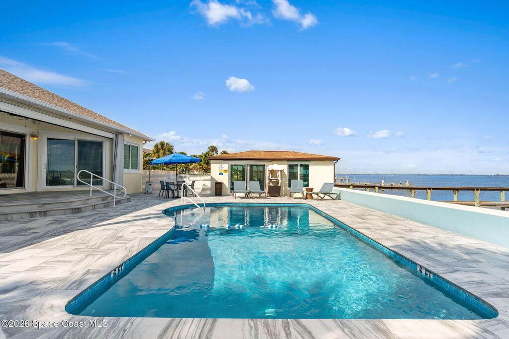 WATERFRONT, PRIVATE POOL, DOCK, UPDATED-TURN KEY This one-of-a-kind opportunity offers luxury waterfront living. The remodeled Single Family House features 5 bedrooms, 2 bathrooms, a 2-car garage, private pool, and a dock directly on the Indian River, with spectacular views from the living areas, primary bedroom, and office.The property also includes a fully remodeled apartment building with 5 units. Four 1-bedroom units and one 2-bedroom unit, all featuring high-end finishes. No detail was missed in the top-to-bottom renovation, showcasing high-end finishes and hurricane impact windows throughout. The chef's kitchen is equipped with a premium refrigerator/freezer/wine fridge combination and a uniquely tucked-away oversized walk-in pantry. The primary bathroom boasts a massive spa-like walk-in shower, with the guest bath equally updated and refined. Ideally located near Sebastian Inlet, beaches, airports the Space Center, Port Canaveral, Cocoa Beach, and Disney World.