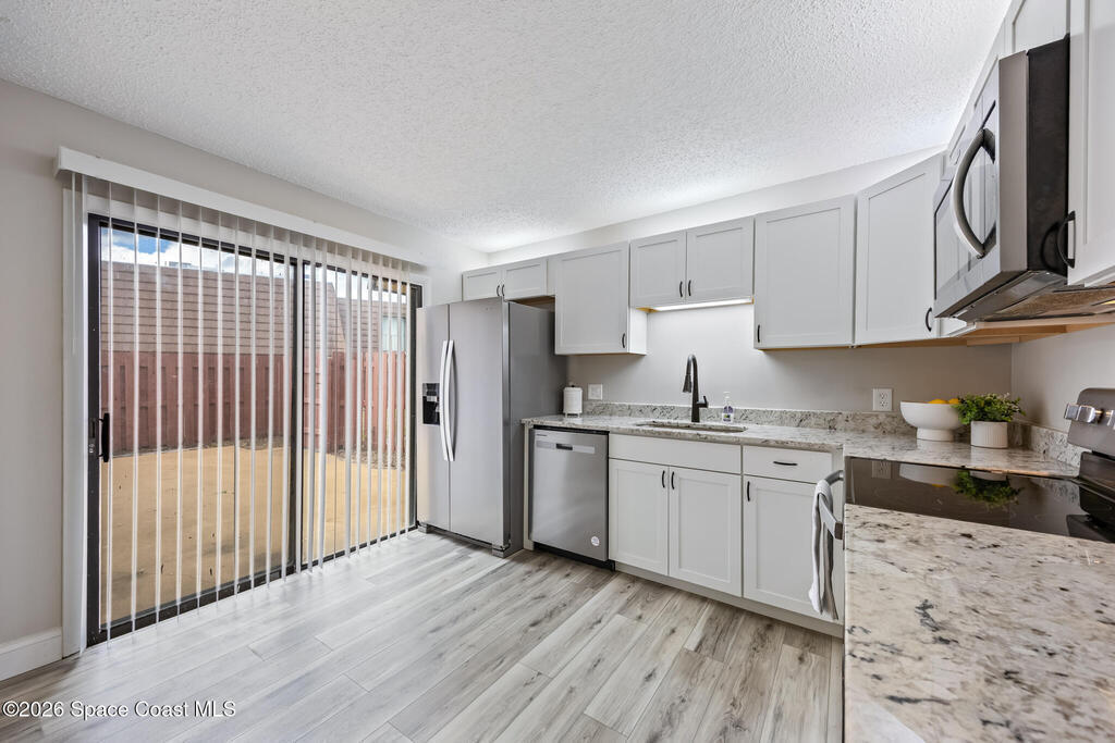 Prepare to be wowed by this spectacular, move-in-ready home that has been REMODELED & RENOVATED, making it truly turnkey for the next owner. A 2025 AC adds peace of mind, while the remodel completed approximately 3 years ago includes like-new carpeting located on the stairway, second-floor landing, & bedrooms. The entire 1st floor features luxury vinyl flooring & offers a smart, functional layout, including a washer/dryer hookup conveniently located in the1st floor half bath, a linen closet, & a deep, useful storage closet. The kitchen/dining area provides ample space for everyday living & is filled with abundant natural sunlight. Step inside through a large, private courtyard that offers endless possibilities perfect for creating an inviting outdoor lounge space. Newer appliances & four sliding glass doors enhance the home's open airy feel. The HOA includes internet, water & lawncare adding to the affordability & convenience of community living.