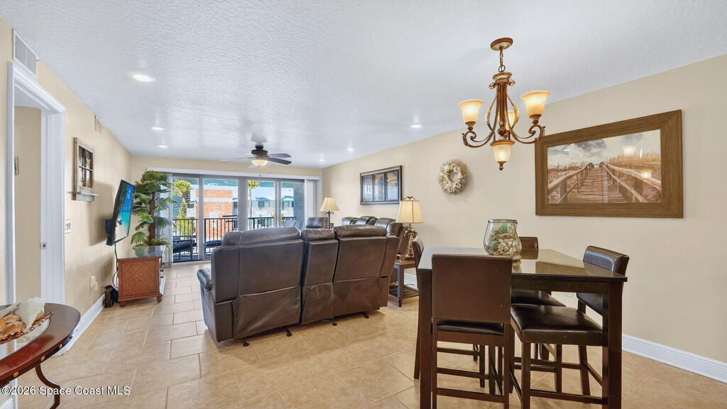 Turn-key furnished investment coastal condo with daily, weekly or monthly rental options support excellent investment potential. This updated 2-bedroom, 2-bath unit in Sandcastles Condominiums offers 1,296 sq. ft. of beachside living just steps from the ocean. Located on the second floor, the condo features tile flooring, spacious bedrooms, updated baths, and a private balcony to enjoy ocean breezes. The bright, open layout makes it ideal as a vacation rental, second home, or full-time residence. Amenities include a heated pool, spa, sauna, tennis and pickleball courts, private beach access, on-site management, detached garage, and ample parking. Conveniently located on North Atlantic Ave near downtown Cocoa Beach, the Pier, Ron Jons, and popular rocket launch viewing areas.