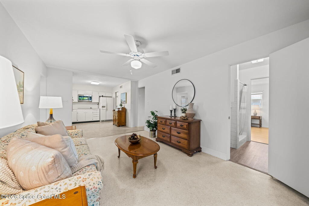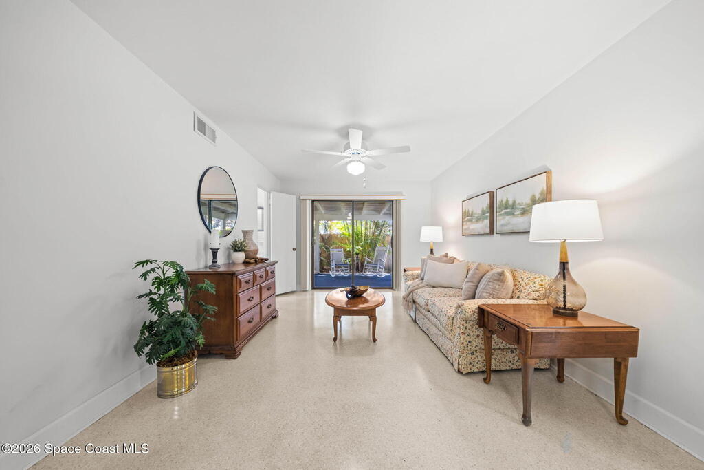 This thoughtfully designed 3-bedroom, 2-bathroom Indialantic home offers the flexible space today's buyers seek, featuring dual living areas, a dedicated home office, and an air-conditioned enclosed porch that extends living space year-round. An oversized 2-car garage and additional screened enclosure provide even more usable square footage.Major systems have been updated, including a 2019 roof, 2024 HVAC system, and 2021 water heater. Original terrazzo floors add timeless character and easy maintenance.Living area reflects the enclosed rear porch under air and differs from tax roll.Located in one of Indialantic's most desirable beachside neighborhoods, you're minutes from ocean access, parks, dining, and shopping.