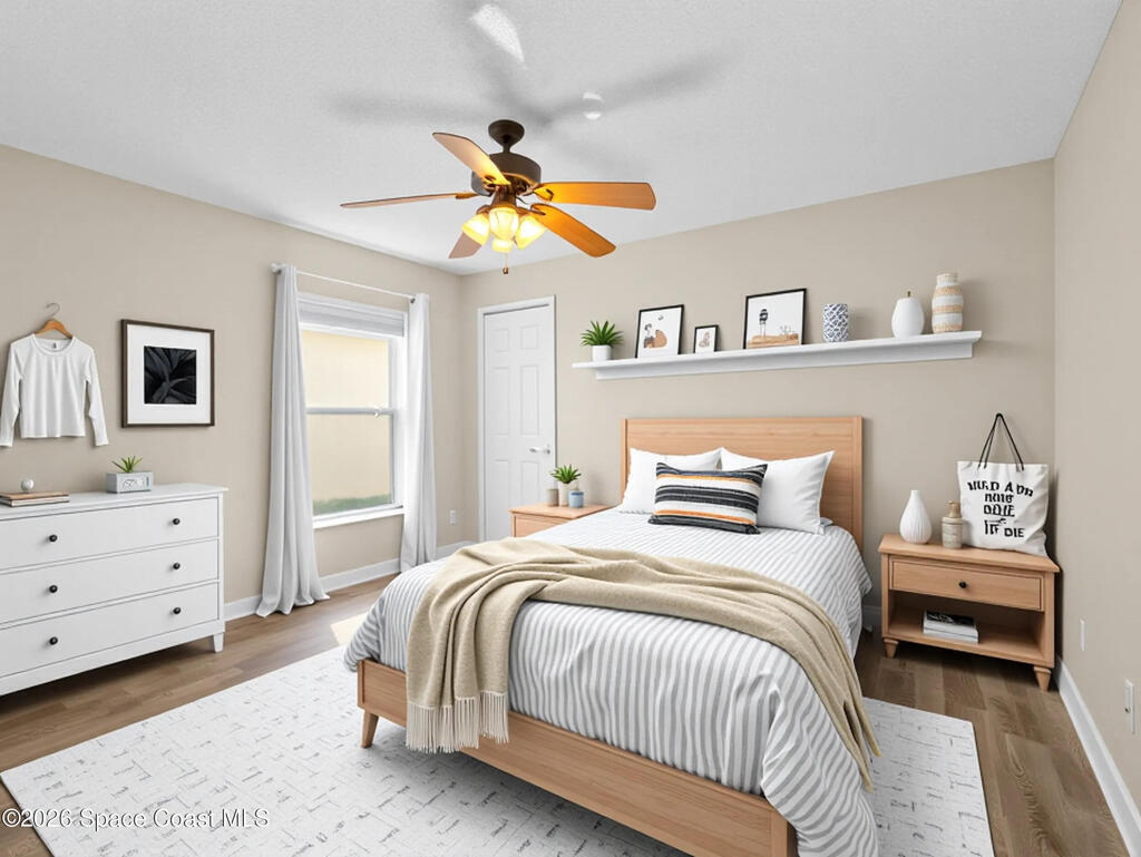 Beautiful lakefront living in this Viera home! A+ school schools Kitchen & baths fully renovated with new cabinets, gorgeous quartz countertops, sleek hardware, and faucetsNewly REMODELED Viera 4-BDRM lakefront property in A+ school district. Brand-new glass front door welcomes you into a home with stylish vinyl plank flooring throughout - no carpet! Kitchen & baths fully renovated with new cabinets, gorgeous quartz countertops, sleek hardware & faucets. Bathrooms also feature new glass-enclosed showers & toilets. Vaulted ceilings with open living & dining areas create a spacious atmosphere. The kitchen boasts a breakfast nook & large walk-in pantry. The sizable dining room provides access to a screened porch overlooking the lake. The primary suite offers lake views, a soaking tub, a separate shower & his-&-her closets. Laundry room off the kitchen. This home includes a 2-car garage. Enjoy the community pool and quiet streets, with close proximity to golf, shopping, dining, the new Wh