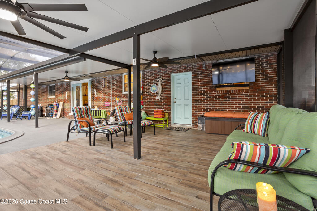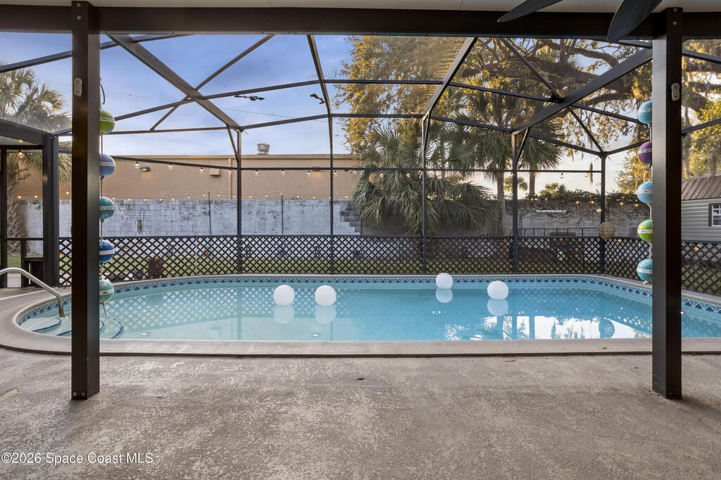 MOTIVATED SELLER! Substantial price improvement. Welcome home to this modern contemporary retreat just steps from the Indian River. Designed for effortless living and unforgettable entertaining, this home features a 2024 roof, A/C 2022, updated plumbing, a new well and pump, and a whole-home on-demand generator. Also, new clear hurricane shutters and aluminum pre-wired loft shed. Also a newer concrete slab for your camper with 30 amp service available. Beautiful terrazzo floor throughout the home. The kitchen shines with designer cabinets, quartz countertops, and a natural gas stove, and the primary suite is enhanced with a mini split system.Outdoors is the true showstopper--a very large pool area built for entertaining, complete with ambient lighting. Enjoy a huge screened-in back porch, paver deck, artificial turf, sodded front yard, new shed, and RV pad with water and electric. Pool upgrades include a new filter tank and salt cell. This is Florida living at its finest