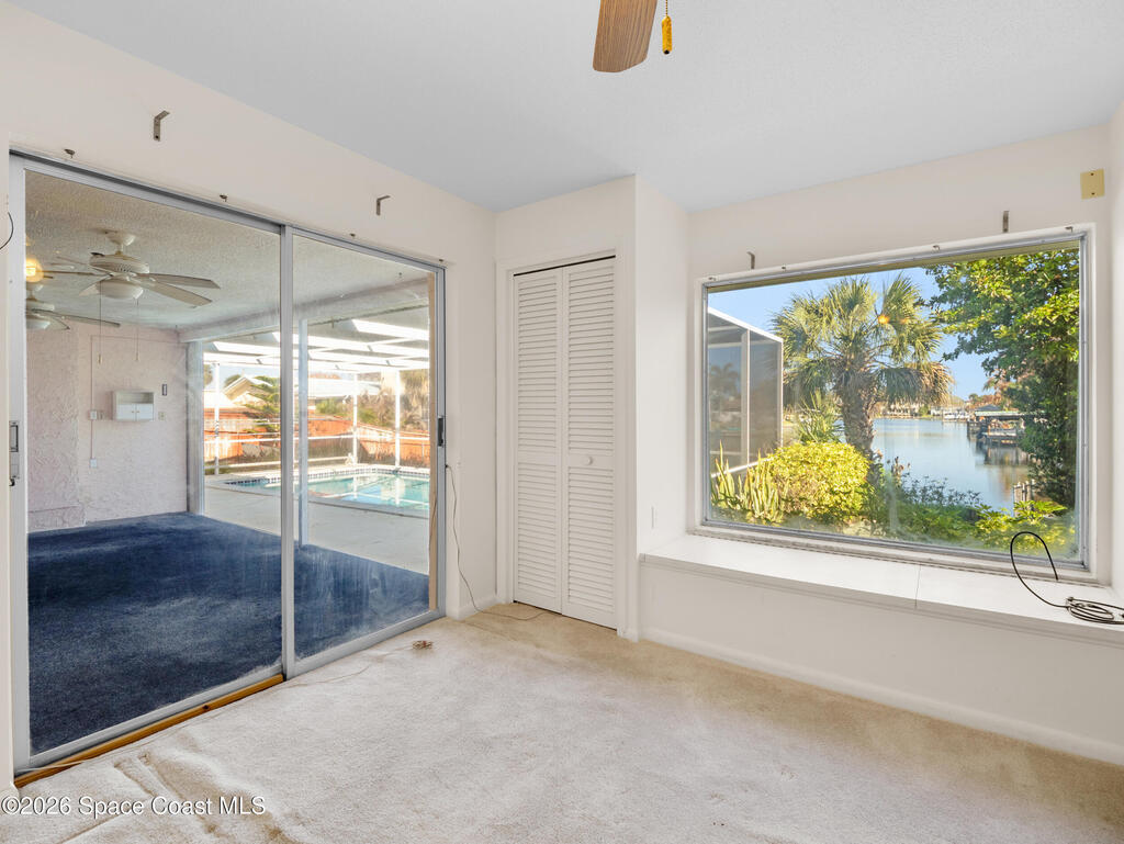 Welcome to your Cocoa Beach canal-front oasis, perfectly positioned at the end of a navigable canal with direct access to the Banana River. This well-maintained single-family home offers 1610 square feet of living space, a sparkling pool, and a private dock ideal for boating, fishing, or simply enjoying the waterfront lifestyle. The property features solid concrete block construction, a durable tile roof, updated electrical systems, and hurricane shutters for added peace of mind. A huge screened room provides the perfect indoor-outdoor living space, offering plenty of room for entertaining or relaxing while overlooking the tropical surroundings. Inside, the home has been lovingly cared for over the years and is ready for your personal interior updates and enhancements. Additional conveniences include a two-car garage and ample parking. Located near historic South Cocoa Beach, you'll enjoy quick access to local restaurants, entertainment, shopping, and some of the area's best schools!