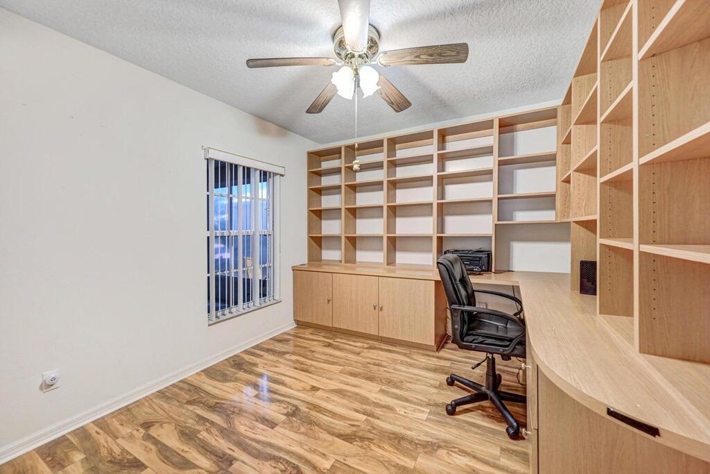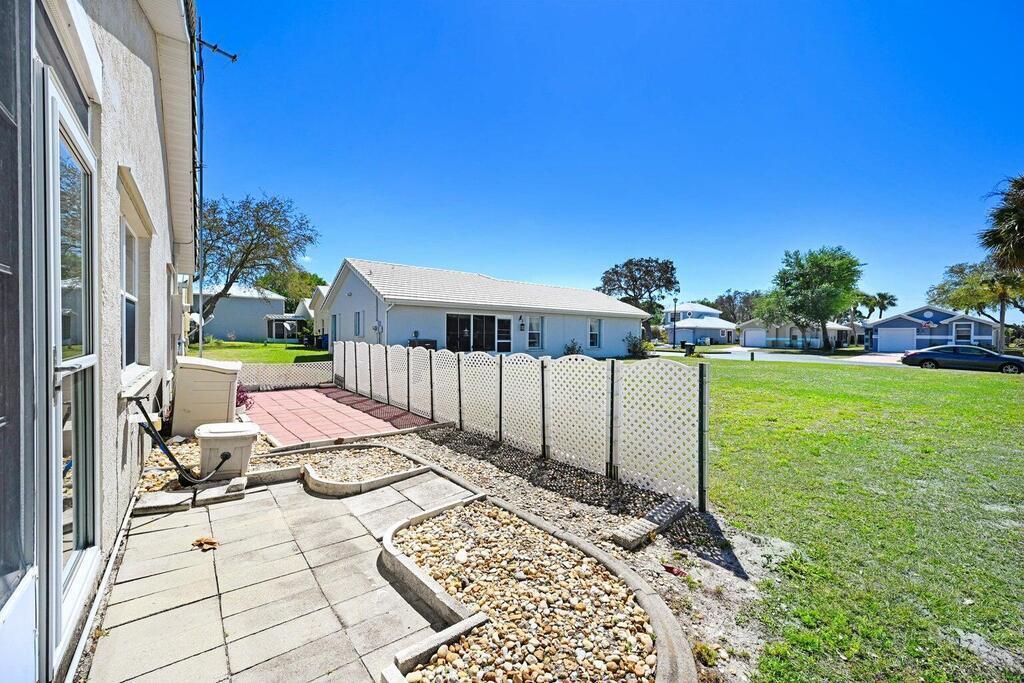 This home in Bermuda Walk Community is ready to move into! This phase of the community is concrete block construction which gives it extra value. It feels much bigger than the square footage would make you think. Vaulted ceilings and large windows throughout the home. Split bedroom floorplan. Extensive built-in cabinets for in-home office. Tiled screen porch with vinyl sliders for cooler months. Second screened porch on the back. Home comes with a water filtration system and home warranty on appliances. Kitchen is large with lots of cabinets and dining space. Wonderful convenient community pool. This home is perfect for the low-maintenance life-style!