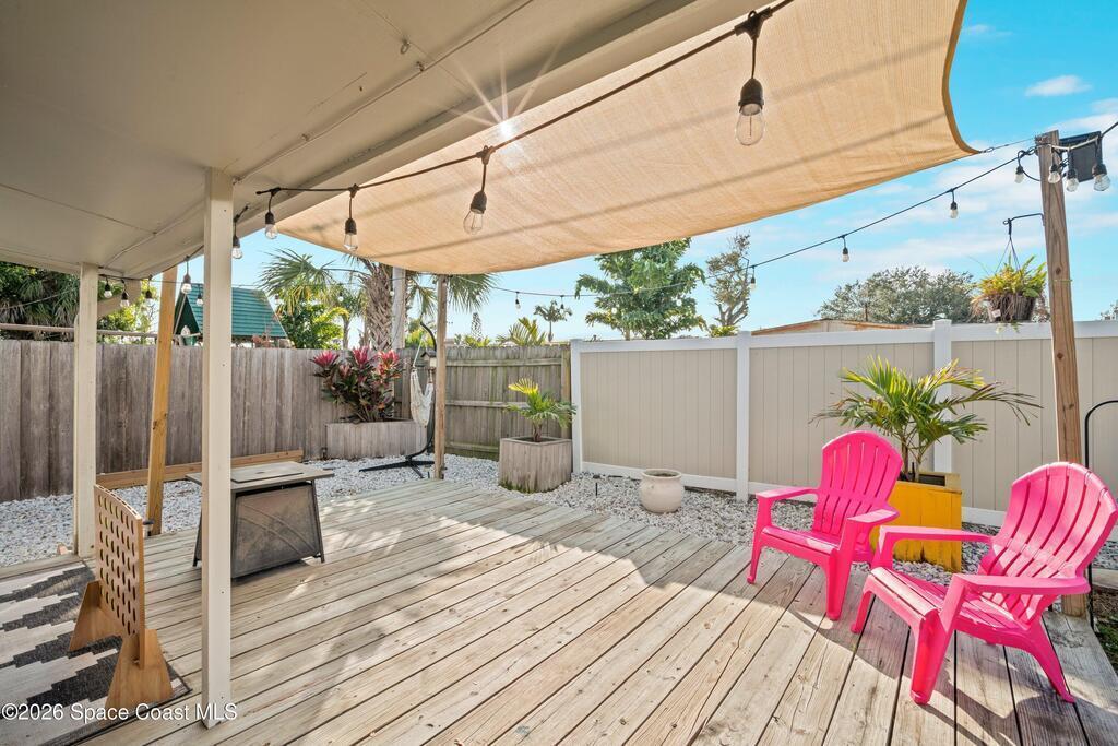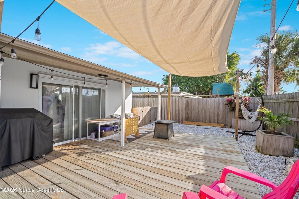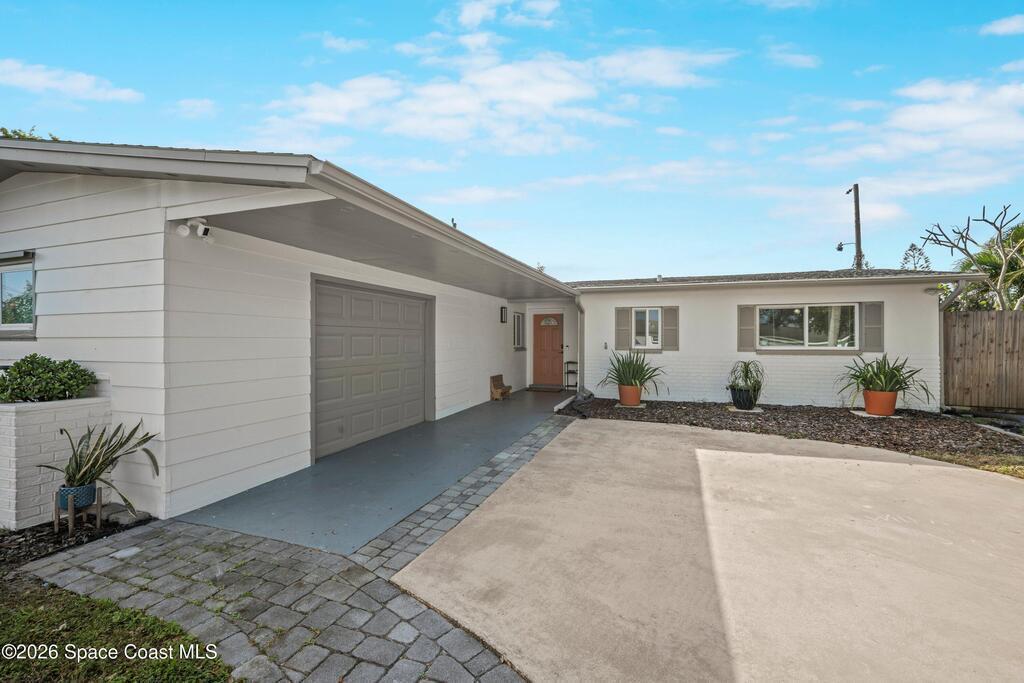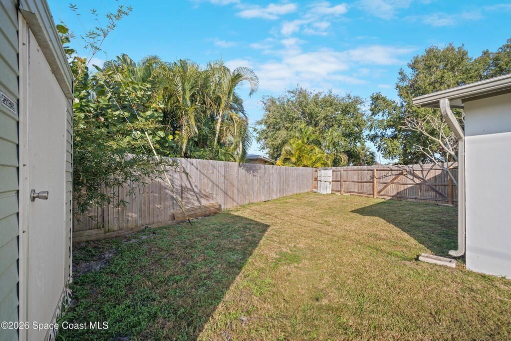 This 3-bedroom, 2-bathroom home in South Merritt Island is clean, well-kept, and updated where it matters. The roof was replaced in 2019, the main AC is brand new, the electrical panel has been updated, the exterior has fresh paint, and natural gas is available on the property for appliances or upgrades. Inside, the layout is simple and functional with comfortable living areas and an interior laundry room.The fully fenced backyard is easy to enjoy, featuring a deck for grilling or relaxing, a storage shed, and a wide 10-foot gate that works well for a boat, trailer, or convenient yard access. Turf along the side yard helps keep maintenance low. Out front, the oversized driveway offers concrete plus paver parking. Hurricane shutters protect all windows, and the garage includes a mini split AC, making it usable as a workspace, gym, or additional flex space. Located minutes from shopping, Cocoa Village, and the beaches.