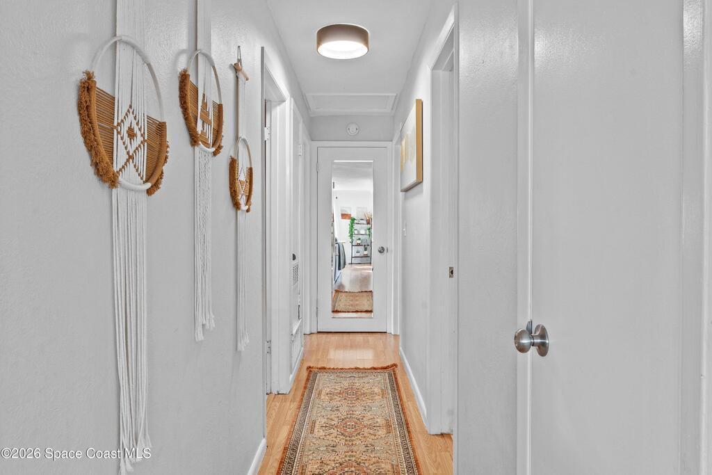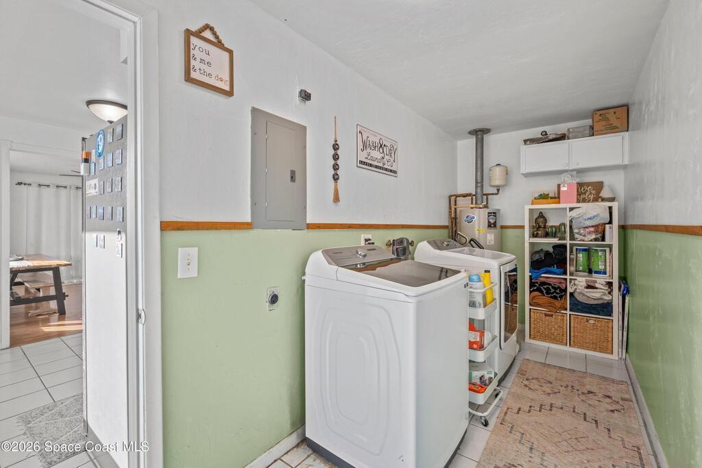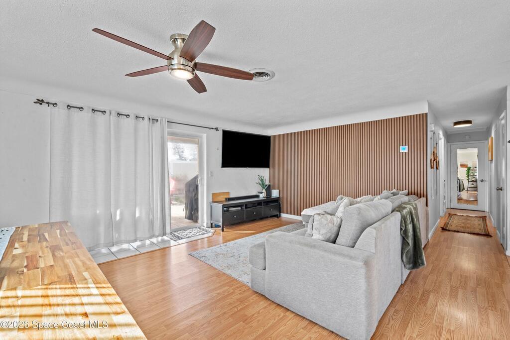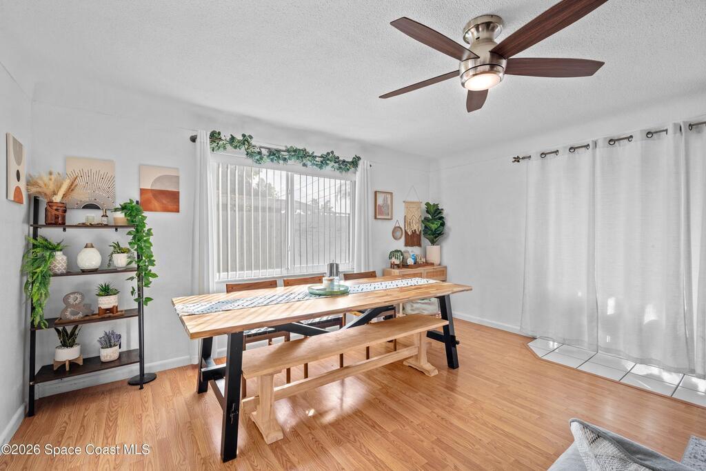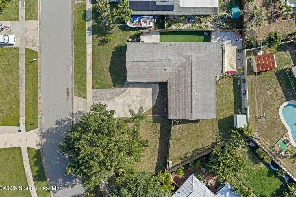 This 3-bedroom, 2-bathroom home in South Merritt Island is clean, well-kept, and updated where it matters. The roof was replaced in 2019, the main AC is brand new, the electrical panel has been updated, the exterior has fresh paint, and natural gas is available on the property for appliances or upgrades. Inside, the layout is simple and functional with comfortable living areas and an interior laundry room.The fully fenced backyard is easy to enjoy, featuring a deck for grilling or relaxing, a storage shed, and a wide 10-foot gate that works well for a boat, trailer, or convenient yard access. Turf along the side yard helps keep maintenance low. Out front, the oversized driveway offers concrete plus paver parking. Hurricane shutters protect all windows, and the garage includes a mini split AC, making it usable as a workspace, gym, or additional flex space. Located minutes from shopping, Cocoa Village, and the beaches.