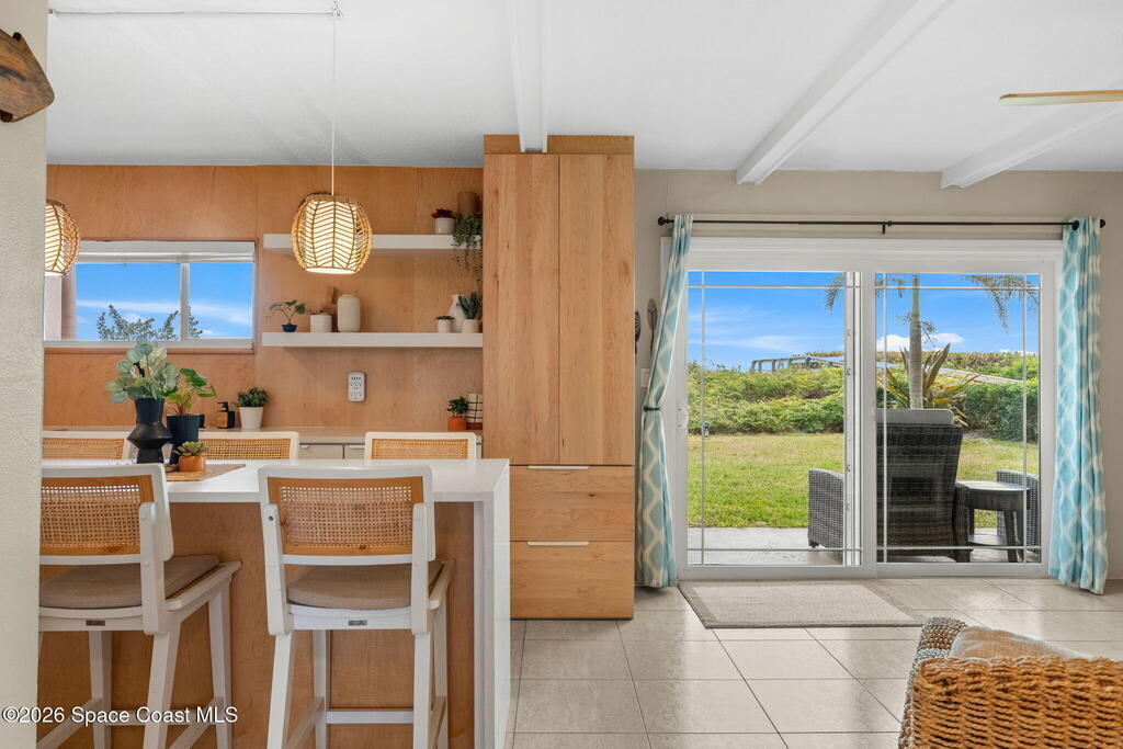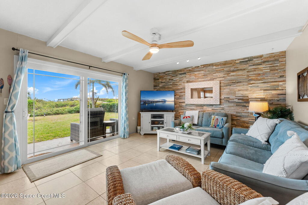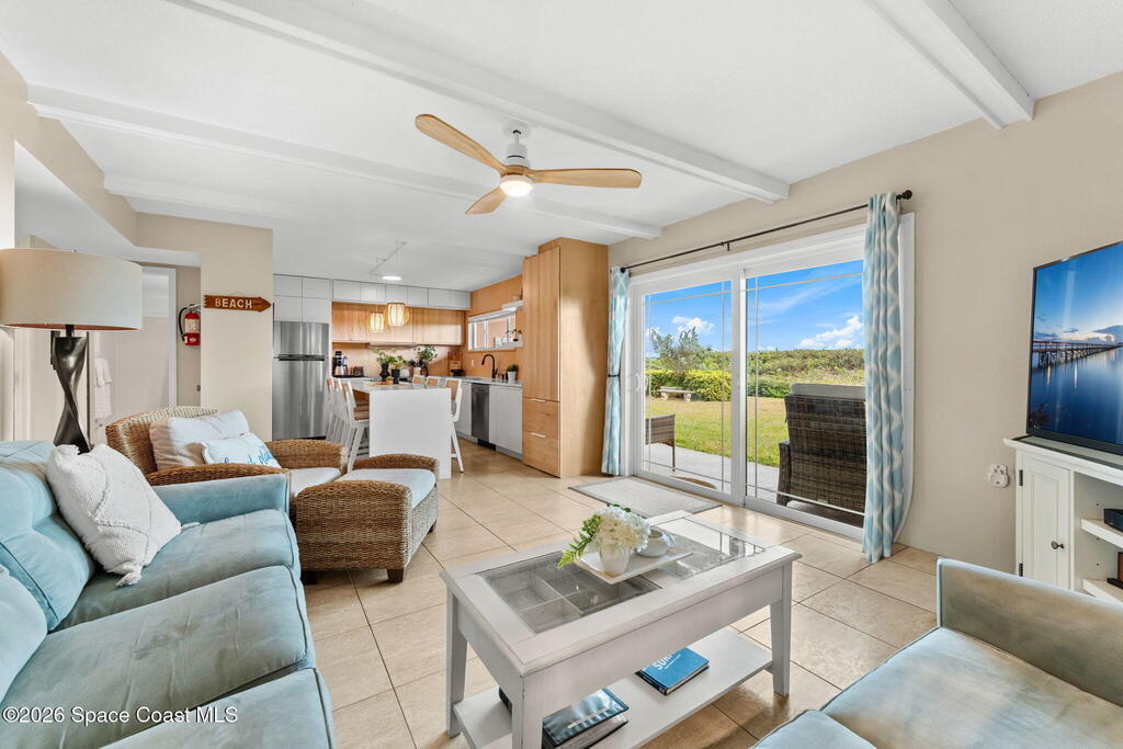 Enjoy the ease of coastal living in this fully furnished, ground-floor 2 bed, 2 bathroom oceanfront condo at The Diplomat. Step directly outside to beach access & a rare green space that feels like your own backyard - perfect for gatherings, grilling, or simply soaking in the sea breeze. Inside, the beautifully updated kitchen anchors an open layout with tile flooring throughout, newer impact-rated windows and slider and a private washer and dryer. The spacious primary suite and remodeled bathrooms make it easy to move right in. Short-term rentals and Airbnb are allowed, offering strong investment potential. Newer HVAC and tasteful updates throughout add comfort and style. Upcoming exterior restoration project will further enhance the communities appeal, & the seller will be covering most of the assessments. Resort-style amenities include pool, tennis, pickleball, shuffleboard, & BBQ areas. Ideally located near shopping, dining, Port Canaveral, & all that Cocoa Beach has to offer.