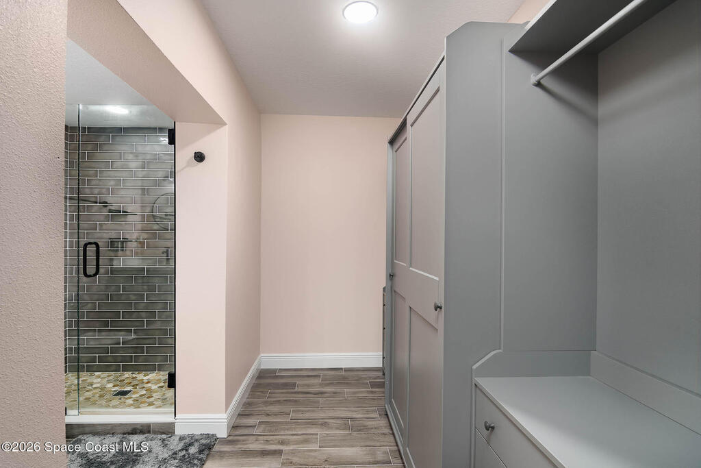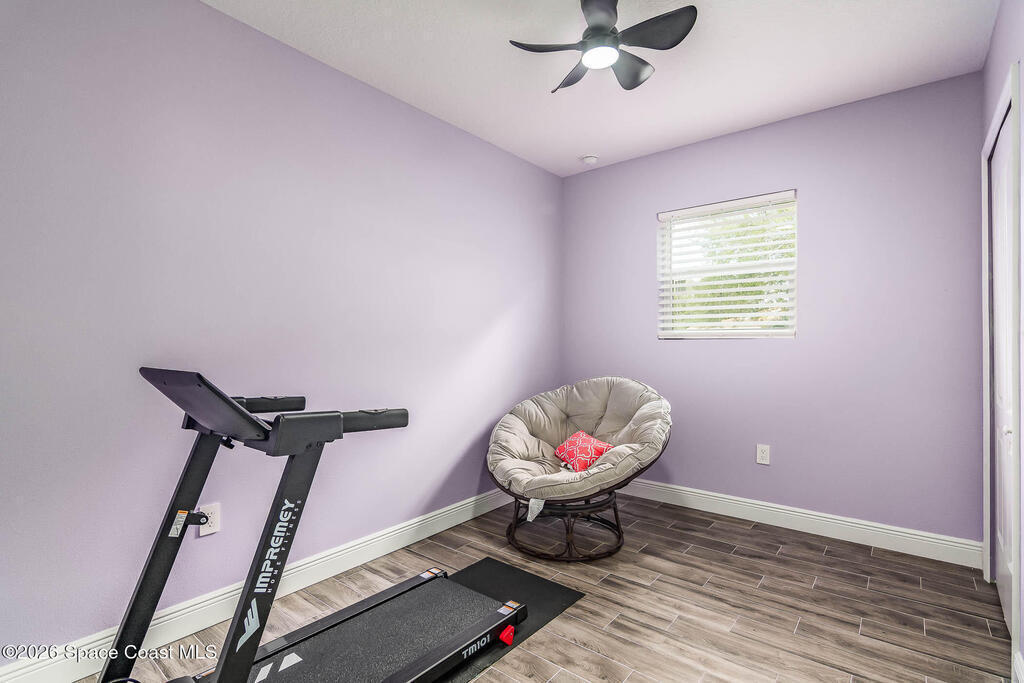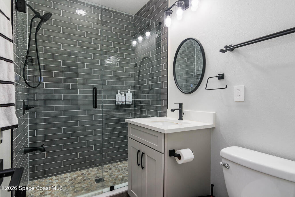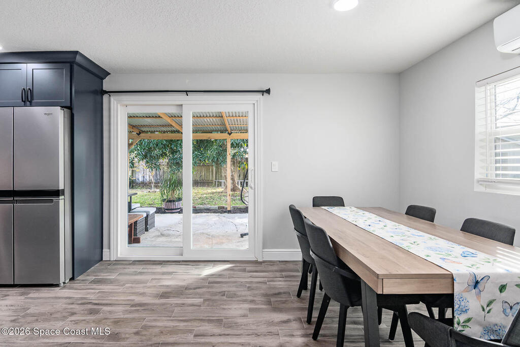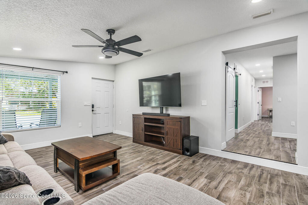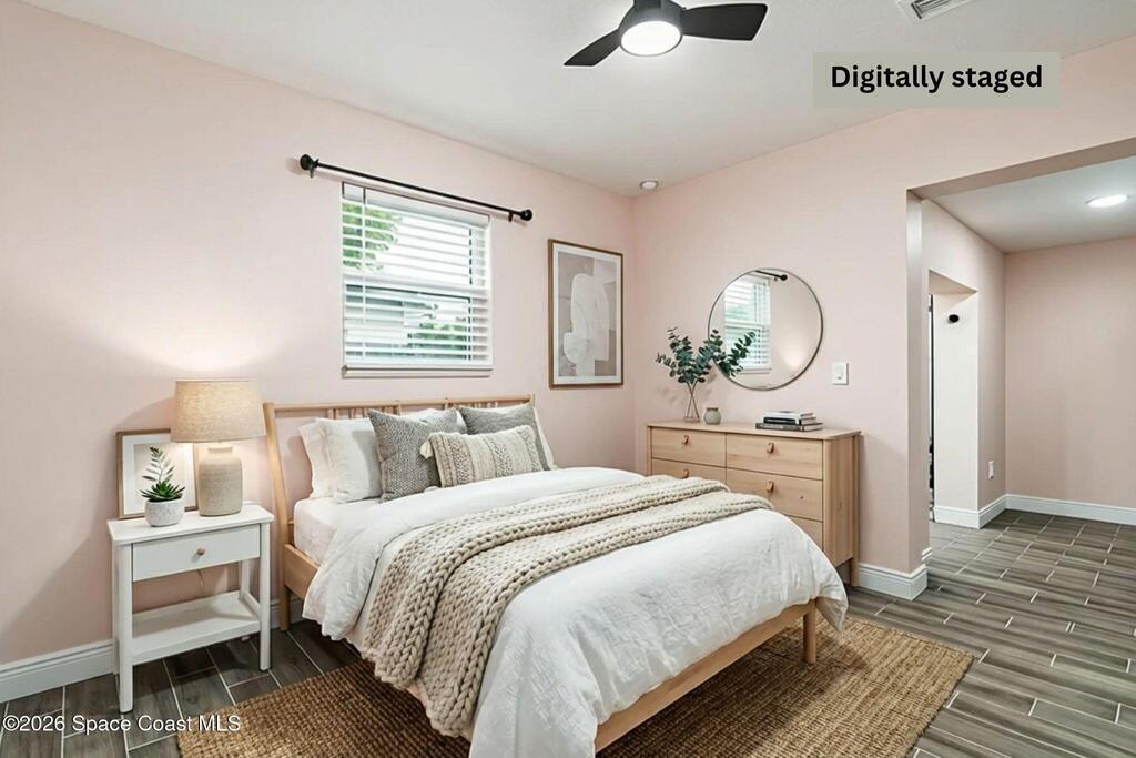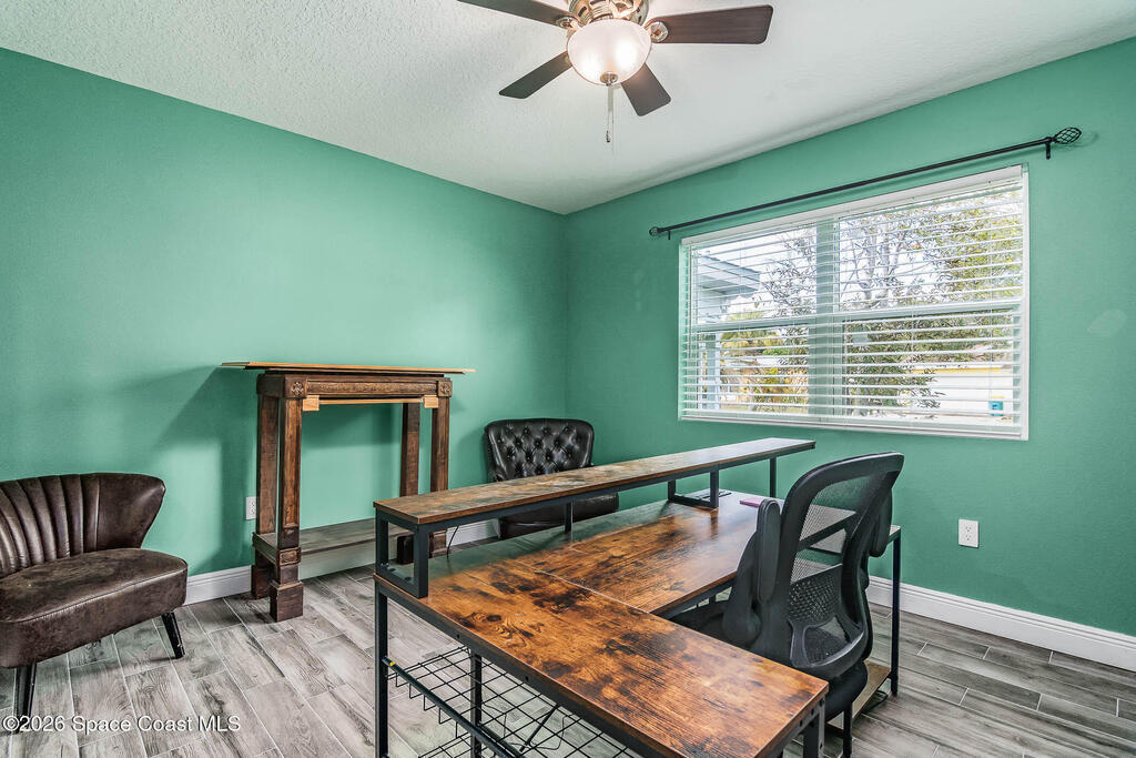 Just 5 min. walk to FIT - (Florida Tech) in Melbourne, this 4-bedroom home offers great value with $167K in thoughtful upgrades, all completed in 2023 for a clean, modern feel. The updated kitchen features a wall oven, gas cooktop, quartz counters, new cabinetry, and hardware flowing into a casual dining area. A small office provides work-from-home flexibility, while the indoor laundry room adds everyday convenience. The refreshed bathrooms include floor-to-ceiling tiled showers with glass enclosures, new vanities, and contemporary finishes. Wood-look tile flooring runs throughout for a cohesive, low-maintenance design--no carpet. Major updates include a 2017 metal roof, electrical panel, and impact windows throughout, offering durability and peace of mind. Outside, a large backyard with a spacious porch is ideal for relaxing or entertaining, plus a shed for storage. A solid, move-in-ready home in a central location near shopping, dining, major employers, and just 10 min. to the beach.