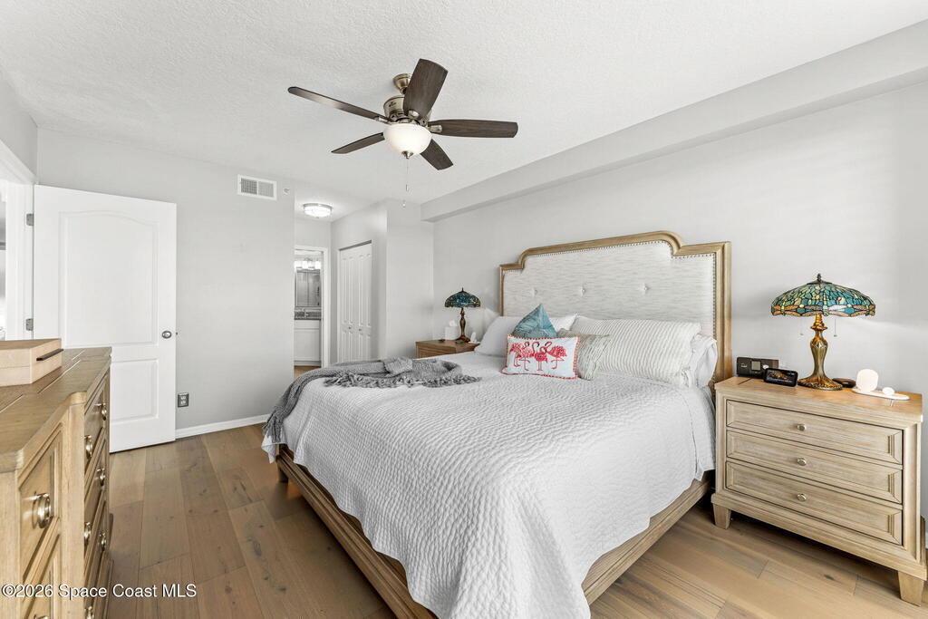 Experience effortless coastal living in this turnkey, fully remodeled 2-bedroom, 2-bath residence perched on the fifth floor of the highly sought after Vizcaya condominium. Thoughtfully updated with stylish luxury vinyl flooring and modern finishes throughout, this home offers a refined yet relaxed beachside aesthetic. A beautiful side-ocean view provides a daily backdrop of shimmering water and soothing sea breezes, while the elevated vantage point fills the residence with natural light and a serene coastal ambiance. The open layout is designed for both comfortable living and easy entertaining, blending functionality. Residents enjoy a heated oceanfront pool and convenient beach access, embracing the coastal lifestyle that makes Indialantic so desirable. Vizcaya reflects exceptional pride of ownership and proactive maintenance, with the milestone inspection completed, two updated elevators, newly finished balconies (2025), and fresh exterior paint, providing long term peace of mind!