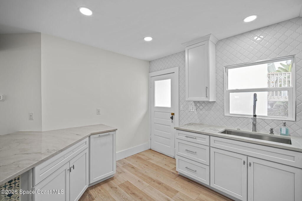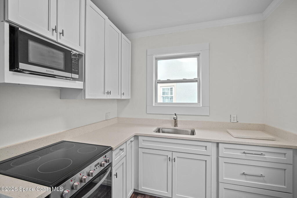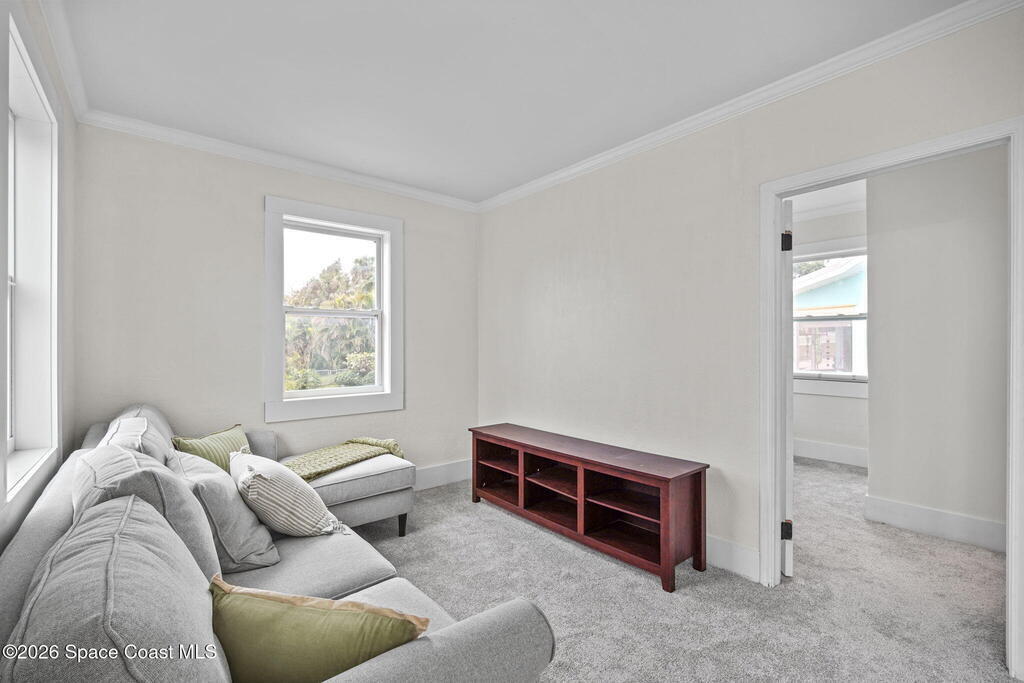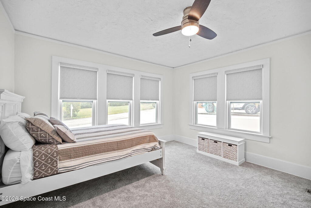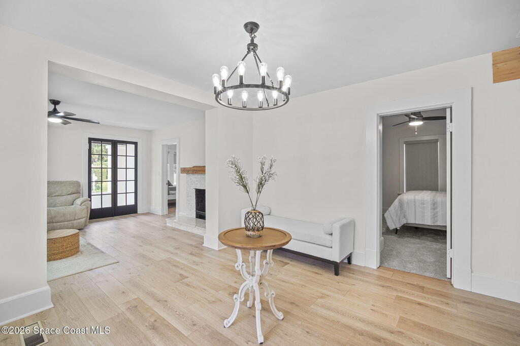 Set along the scenic Indian River, this exceptional riverfront residence blends timeless character with thoughtful modern updates, all within walking distance to Cocoa Village. Set high above the Indian River, the home offers peace of mind along with river views which can be enjoyed from your dock that is built out half way. The remodeled main residence features 3 bedrooms, 2 bathrooms, with a remodeled 520 square foot one-bedroom, one-bath apartment above the two-car garage--ideal for guests or extended living. Extensive upgrades include: New roof (2023), 47 hurricane impact windows, modern garage door, new floording throughout, and new lighting fixtures. Remodeled kitchen features new cabinetry, quartzite countertops, new appliances, an island with seating, and a hidden butler's pantry with laundry. Home has a split bedroom floor plan. Master suite has a walk-in closet, separate sitting area, dual head shower, and automatic roller shades. Comes fully furnished. Truly a must see!