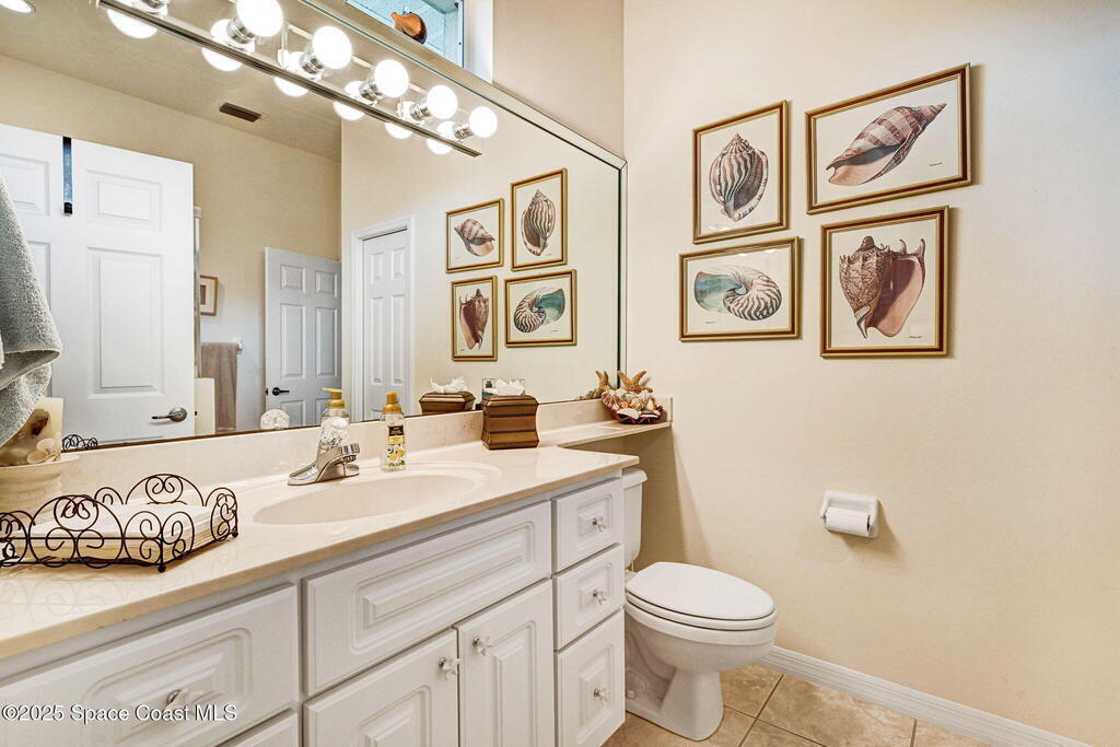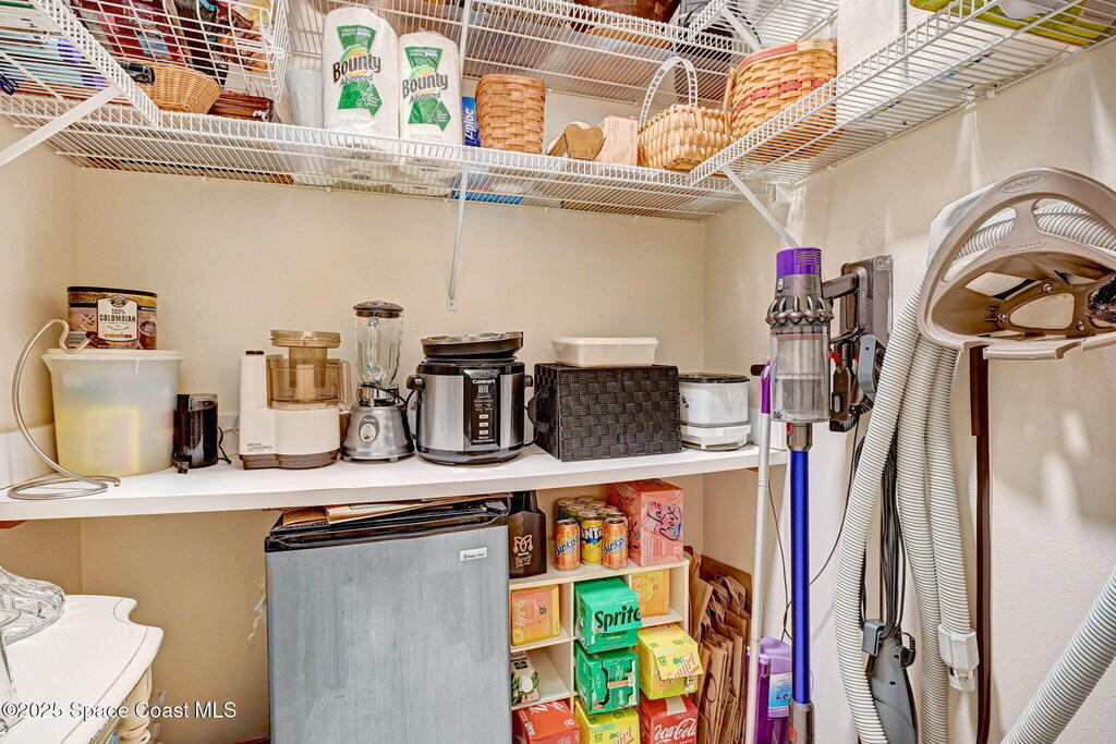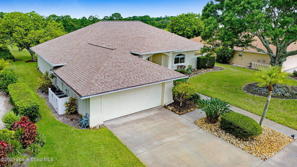 Captivating Tropical Lake & Preserve Views, with Mature Trees located in the highly rated Viera school system. This Custom Built 3 Bedroom; 2 Bath home with original plans available. offers endless possibilities. Features high ceilings, generous storage, stainless-steel kitchen appliances and a removable banquette dining area. A second (walk-in) pantry is conveniently located off the drop zone near the garage. The great room offers new luxury vinyl plank flooring, while the primary suite includes battery-operated draperies, dual vanities, dual closets, a water closet with attached laundry with built in craft area, and access to a private meditation area. Bedroom 3/Den features double doors and a spacious walk-in closet. Upgrades include impact windows (master bay & office), a new storm shutter on the screened patio, and a central vacuum system. Enjoy community amenities-pool, park, basketball court, & walking trails--all minutes from I-95, dining, shopping and the beach!