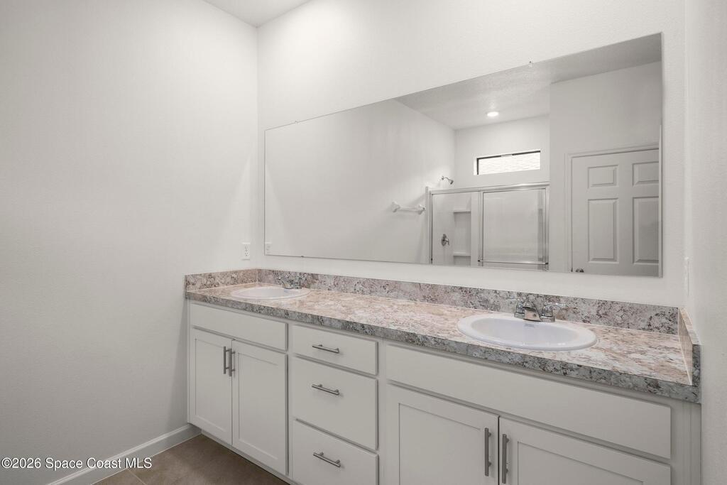 Welcome to this beautifully maintained, move-in ready home located in the sought-after gated community of Bayside Lakes. Built in 2022, this residence offers soaring ceilings and a bright, open-concept layout designed for modern living. The split floor plan provides three generously sized bedrooms on one wing, while the private primary suite is tucked away at the rear of the home for added privacy. The primary suite features dual walk-in closets and a spa-inspired en-suite with double vanities. Enjoy Florida living year-round from the expansive screened-in back porch overlooking the backyard. Bayside Lakes offers wide streets, winding sidewalks, and a community pool, creating a true neighborhood feel. This home is available April 1 and ready for its next owner.