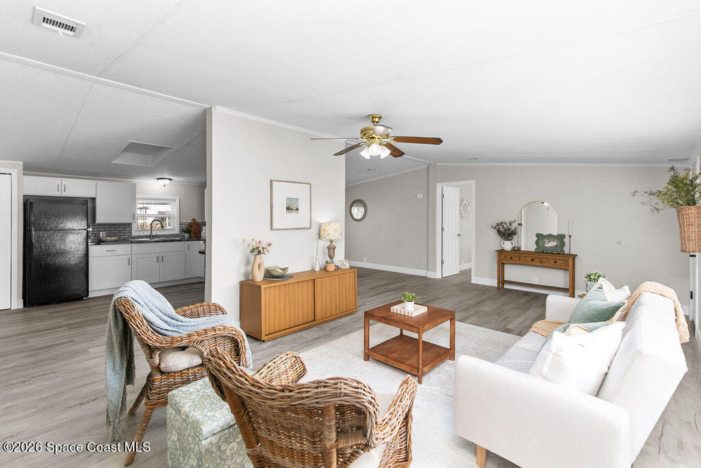 This home is like stepping into a BRAND-NEW country home on a sprawling .73-acre parcel with room for all your tools, toys & dreams! A perfectly planned 4 bed/2 bath split layout offers comfort & flow with an eat-in kitchen & coffee bar, defined dining room & a living room that opens to a wide wood front deck -- perfect for morning coffee or stars-out evenings. Completely reimagined with 2018 AC, 2023 roof, tankless water heater, 200 amp upgraded panels inside & out, LVP flooring, double impact windows/doors, new shaker cabinets, poured epoxy counters with mirrored backsplash & fresh trim/baseboards throughout. Retreat to the primary with a soaker tub + walk-in shower dual vanity; guests enjoy a second bath tiled to the ceiling. New insulation, sub-flooring & repiped with CPVC under the home give peace of mind. Enjoy peaceful country living yet just minutes to I-95 access and about 15 miles to University of Central Florida -- close to shopping, restaurants & everyday needs.