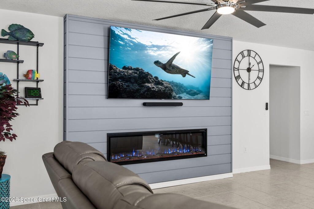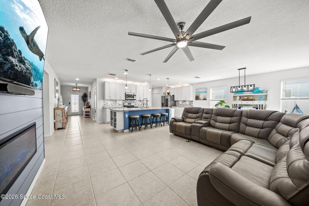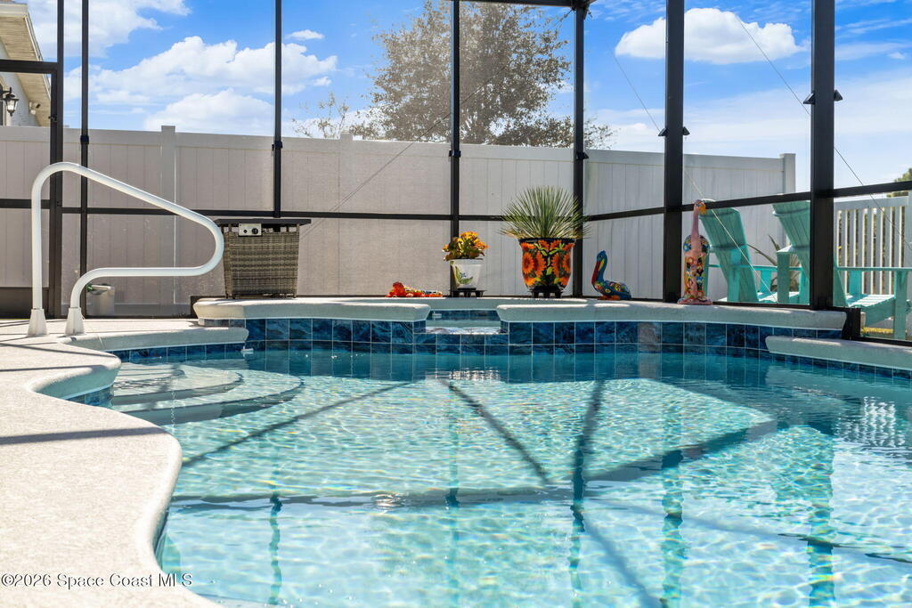 Move-in ready, with over $100,000 in upgrades! Built in 2021, this immaculate 3-bedroom, 2-bath home features a versatile office/den flex room- perfect for remote work, creative pursuits, or guests.Step outside to your own backyard oasis: a professionally landscaped and fenced backyard surrounds a screened-in, HEATED SALTWATER POOL & SPA. The expansive pool area is ideal for entertaining, relaxing, or enjoying Florida's beautiful weather year-round. Remote-controlled hurricane patio shade adds comfort and protection. Nestled on a premium lot with canal views and no direct rear neighbors, this home offers exceptional privacy & tranquility.Inside, the open concept living space features tile flooring throughout, professional interior paint, upgraded modern light fixtures, and blinds. The spacious great room boasts a custom TV and fireplace feature wall with an 80'' TV that conveys. The primary suite is generously sized, offering a custom walk-in closet and a spa-like ensuite bath.